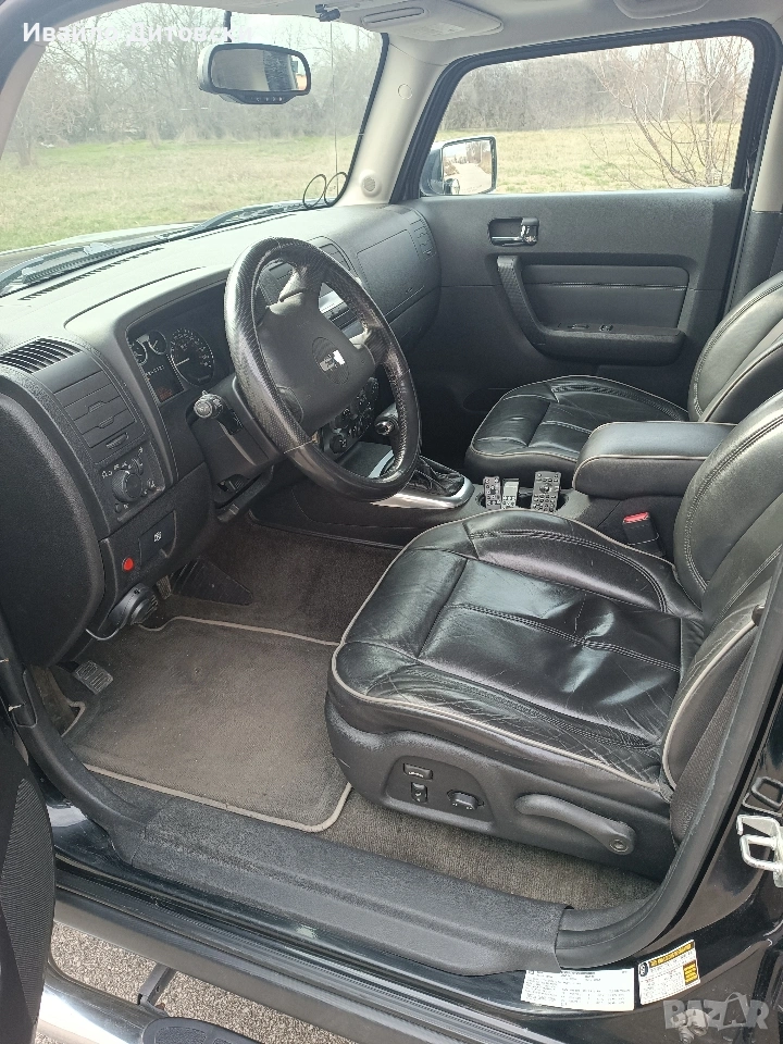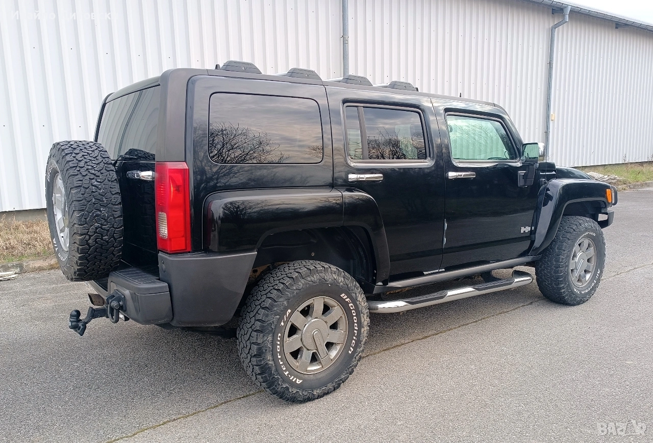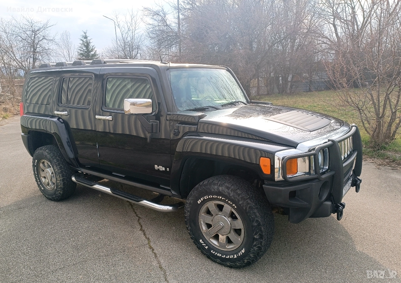 Цената е 13500 евро ! Продавам отличен HUMMER H3, 3.5 бензин с луксозен пакет (рядко срещан) и офроуд пакет. Отлична работа на мотор. Стегната ходова част. Плавна и тиха автоматична скоростна кутия. Добър външен вид и перфектен салон. Реални и доказуеми километри (143 К). Без удари. Пълна 4 х 4 система с блокажи, бързи и бавни. 5 цилиндров VORTEC, най-здравия мотор на H3. Никога не е каран на газ. M1G повишена проходимост. ABS, ESP, ASR, Тракшън контрол, Air beg система. Оригинални Al. джанти. Преден ролбар. Странични степени и окачена рез. гума. Хромирани : предна решетка, огледала, дръжки и степени. Преден LED бар, LED фарове, ксенони за мъгла и LED за заден ход. Камера за заден ход. 4 заключващи се греди за багажник. Теглич с всичко необходимо. Тонирани задни стъкла. Мощна аудио/видео система с навигация, тунер, DVD/TV, USB, Bluetooth, TV монитори за втори ред седалки с плейстейшън DVD+. Предни ел. седалки с подгрев. Кожен салон, не е пушено вътре. Шибедах. Климатроник. Адаптер от 12v. към 220v. Централно заключване. Два оригинални ключа. Ел. стъкла, ел. огледала. Мултифункционално централно огледало. Функция за отваряне на гараж, бариера и др. Допълнителен цифров километраж. Чисто нов акумулатор. Европейски светлини, регистрация. Всички системи проверени и функциониращи. Всичко платено. Качваш се и караш ! Цена 13500 евро. Уникален, без аналогов автомобил ! На живо изглежда брутално яко !