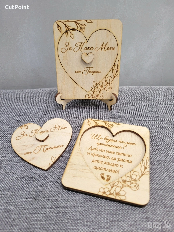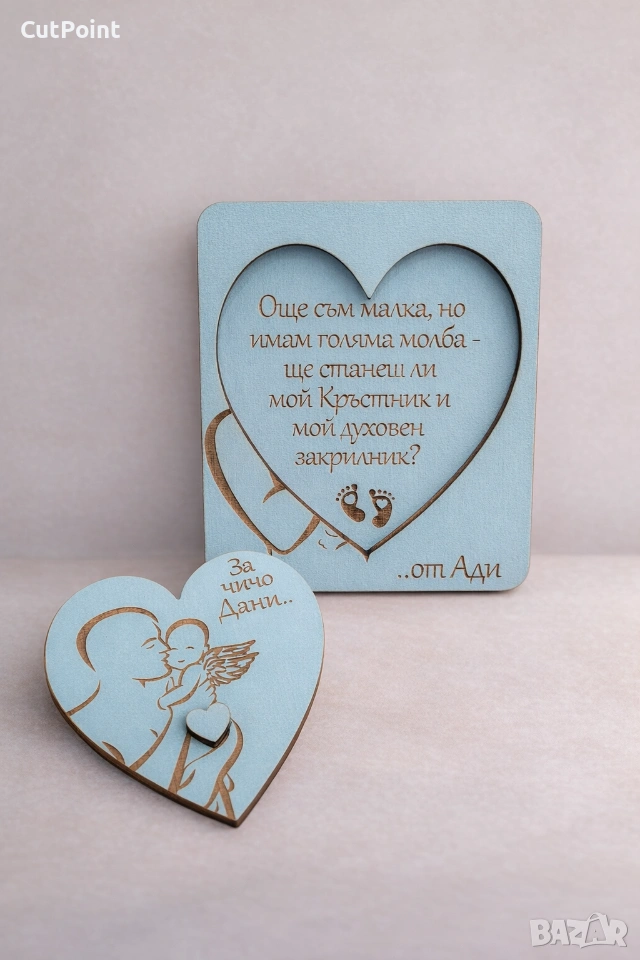 Покана, която казва „благодаря“ с изящество. Направете избора на кръстник/кръстница още по-запомнящ се с тази персонализирана покана за кръщене. *Гравиран текст според вашето желание (име, дата, послание) *Възможност за дизайн по избор — цветове, шрифт, изработване *Красиво опакована — готова за подарък Подходяща за церемония, фотоалбуми и спомен “Да бъде кръстник не е просто роля — това е знак на доверие.” *Поръчайте поканата за кръстник / кръстница още днес и подарете емоция, която остава! За бърза поръчка - https://cutpoint-bg.com/ За повече от нас, тук - https://www.facebook.com/profile.php?id=61552202699862