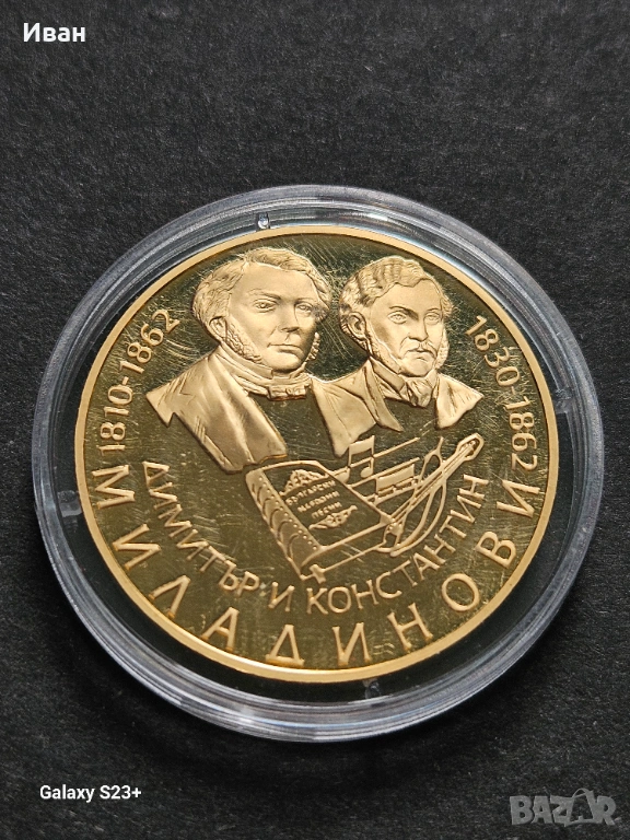 Продавам позлатена монета от поредицата Бележити българи,Димитър и Константин Миладинови → Обява 53732512