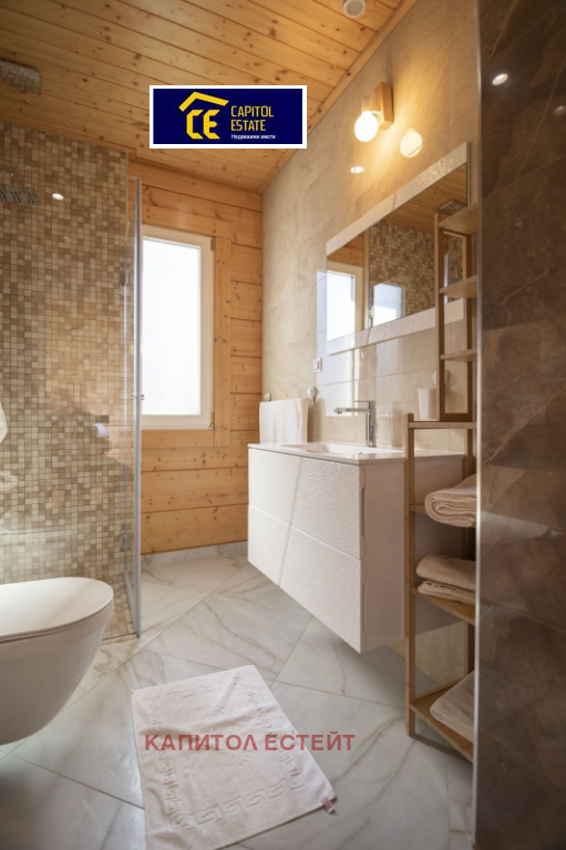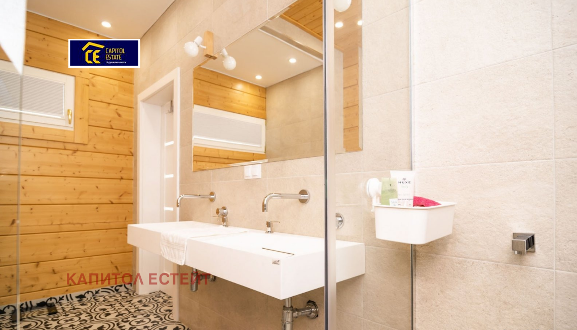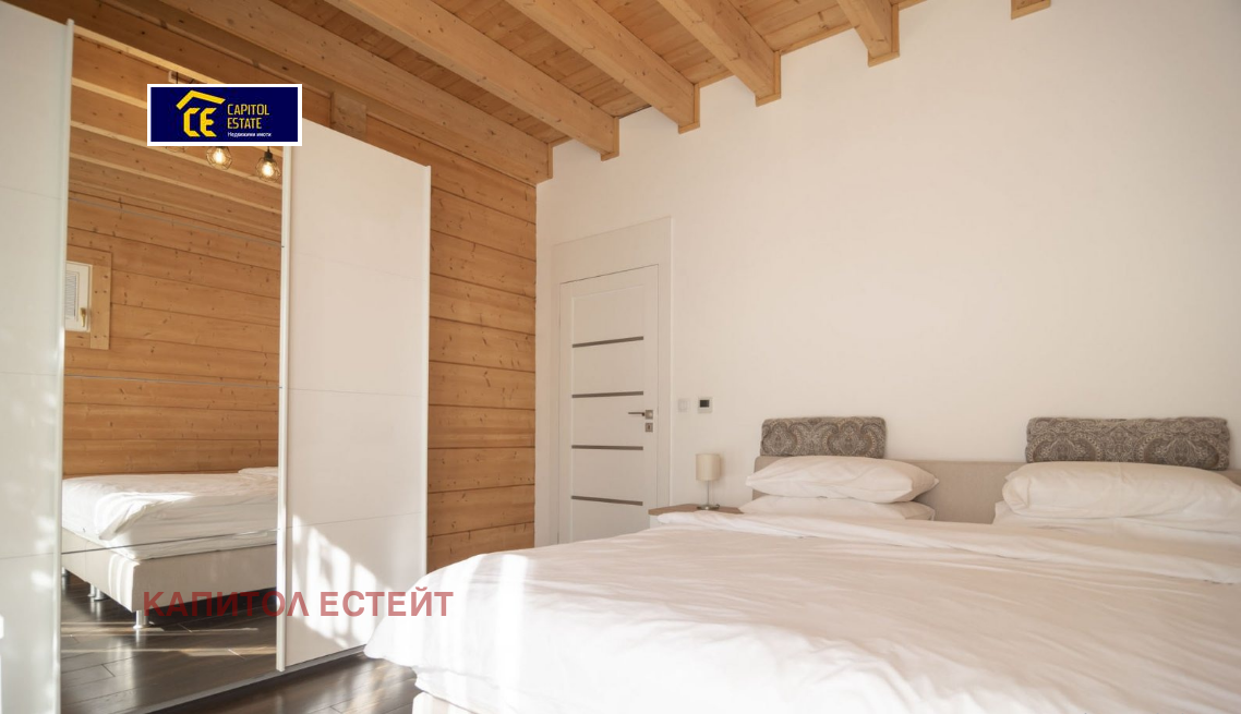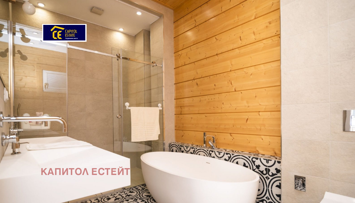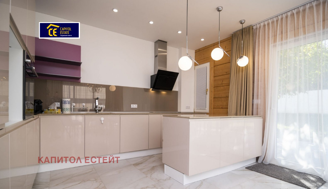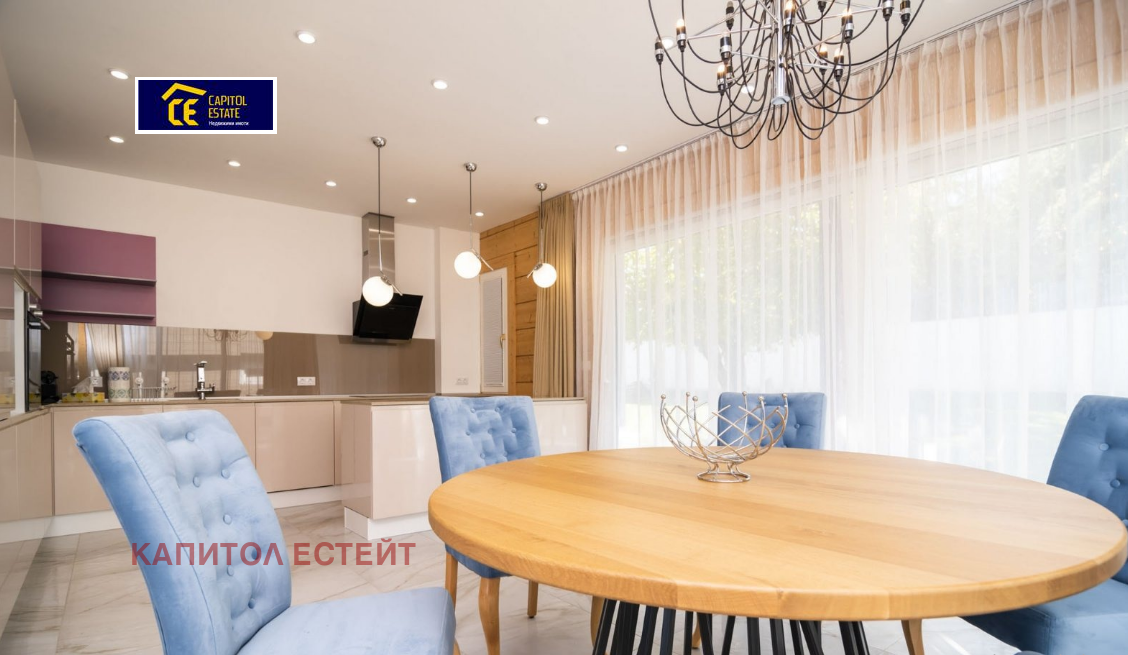 ПРЕДСТАВЯМЕ ВИ прекрасна еко - къща,построена изцяло от естествен дървен материал-финландски смърч,в изключително добре поддържан комплекс с 24- часова охрана,видеонаблюдение, озеленяване и поддържка, находящ се на уникално за София,място.Комплексът е съобразен изцяло с природосъобразния начин на живот,предлага на собствениците перфектен комфорт, чистота, тишишна и спокойствие.Намира се на пешеходно разстояние от гората и само на 10 минути с кола от центъра на столицата.Всяка къща в комплекса разполага със собствен ограден двор. Къщата се продава напълно обзаведена, като всичко е чисто ново и има следното разпределение: СУТЕРЕН, на кота -2,85,състоящ се от: стълбище, коридор, антре, фитнес, перално помещение, техническо помещение, сауна с душ кабина, тоалетна, два склада и гараж за два автомобила; ПЪРВИ ЕТАЖ, на кота +0,00 /нула/ метра,състоящ се от: входна площадка, антре, стълбище, баня с тоалетна, дневна, кухня с трапезария, гостна/кабинет и тераса/веранда; ВТОРИ ЕТАЖ, на кота +3,28 състоящ се от: стълбище, емпоре, три спални, едната от които с дрешник и самостоятелна баня с тоалетна, втора баня с тоалетна и балкон. Отоплението се извършва по най - икономичния и комфортен начин - посредством термопомпа с радиатори и подово отопление. Всичко в този дом е помислено и направено до най - малкия детайл, включително вградена прахосмукачка,вентилация, всички необходими инсталации, осветления и окабеляване. Извършени са всички необходими проверки, касаещи собствеността на имотите, върху които е построен комплекса и собствеността върху самата къща и дворното място и РАЗПОЛАГАМ С ЦЯЛАТА ДОКУМЕНТАЦИЯ, проверки за тежести и пълната история от преди започването на строителството!Ако имате каквито и да било въпроси относно този прекрасен имот или желаете да Ви организирам оглед се свържете с Цветомир Николов : 0879644547
