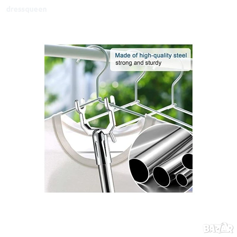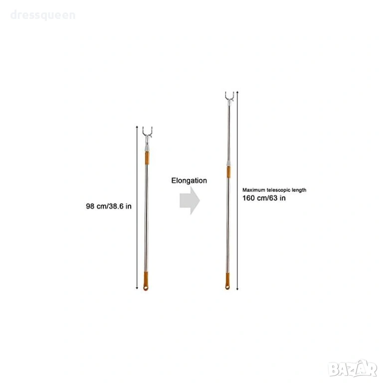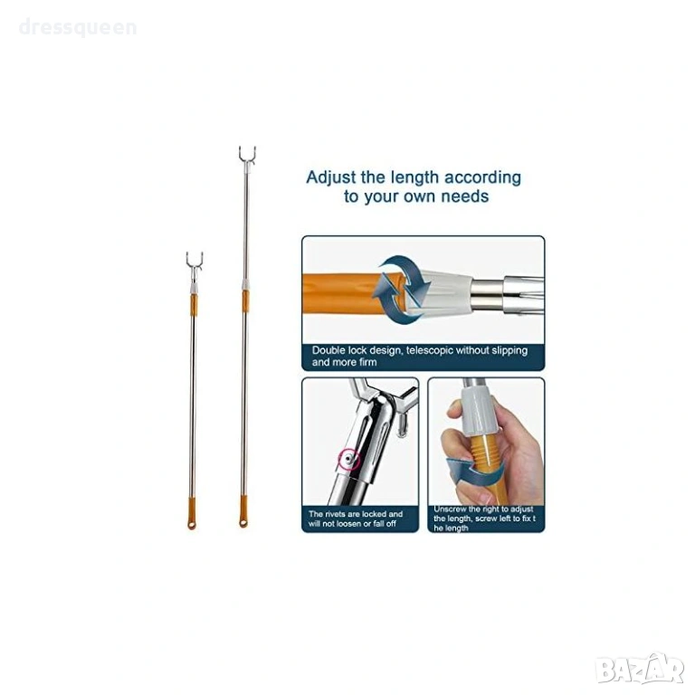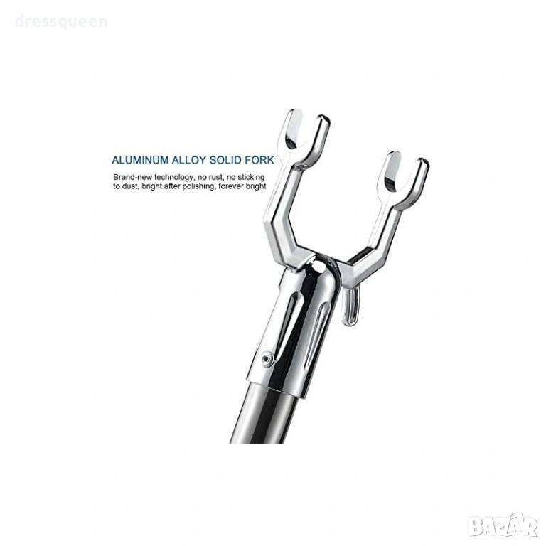 Кажете сбогом на неудобното протягане и стълбите! Тази телескопична пръчка за дрехи е идеалното решение за гардеробни с високи рафтове или лостове. Регулируемата пръчка може лесно да се настрои според Вашите нужди (от 96 см до 160 см) с просто завъртане и заключване. U-образната глава захваща закачалката стабилно, докато двойното заключване предотвратява нежелано скъсяване на пръта по време на употреба. С нея можете бързо и безопасно да сваляте и закачате дрехи от най-високите точки.