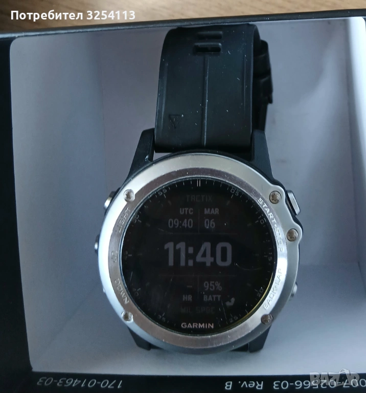 Батерия: 300 mAh литиево-йонна, зареждаща се. Издържа 40 часа в UltraTrac режим, 16 часа в GPS тренировъчен режим и 2 седмици в режим smartwatch с 24/7 проследяване на пулс.