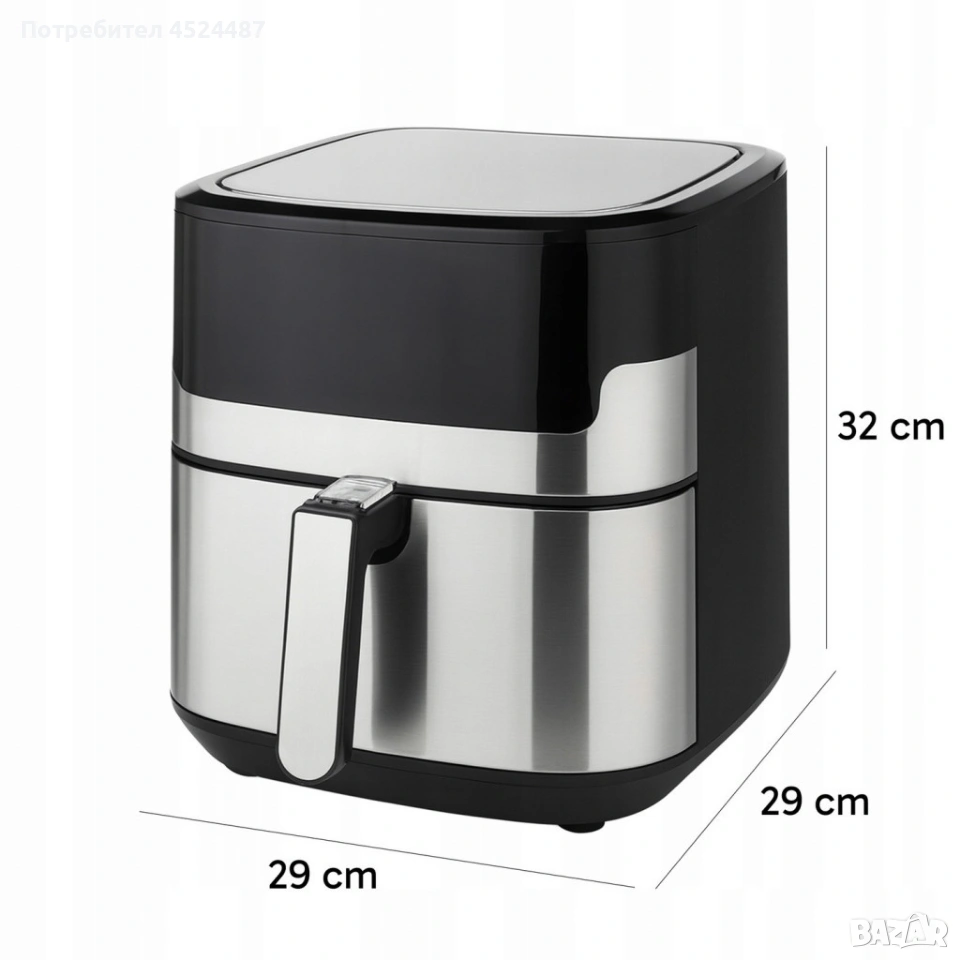 Модел: Retoo OR1293 Мощност: 2200 W Напрежение: 220–240V, 50/60Hz Капацитет: 6,5 литра (общ с решетка) Температурен диапазон: 80–200°C Таймер: 1–60 минути Дисплей: сензорен LCD Програми: 10 автоматични режима Материали: неръждаема стомана, незалепващо покритие Допълнително: вградена система за циркулация на въздуха, дръжка с хладно докосване, съвместимост с миялна машина, CE сертификат