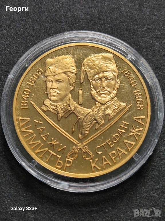 Продавам позлатена монета от поредицата Бележити българи,Хаджи Димитър и Стефан Караджа → Обява 53733222