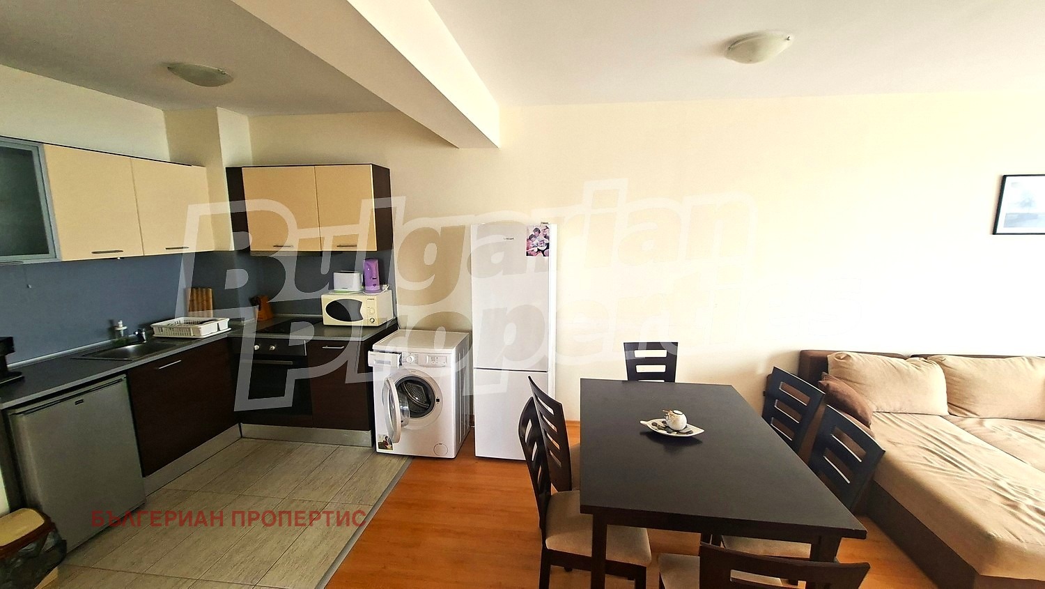 Интериорът е функционално организиран и предлага комфортно пространство за живеене или ваканционен престой. Дневната зона е светла и просторна, с оборудвана кухня и място за трапезария и отдих. Двете спални са удобни и подходящи както за семейно ползване, така и за гости. Апартаментът е оборудван с климатици във всички стаи. Пълното обзавеждане и оборудване може да разгледате на снимките.
