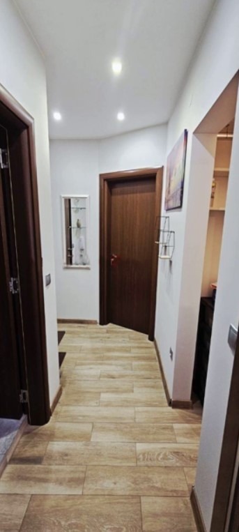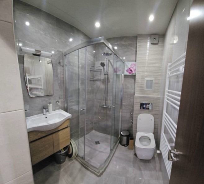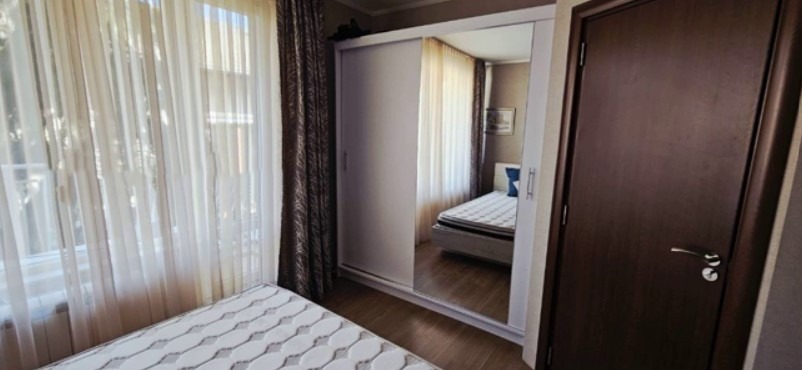 Имотът е обзаведен, с площ 60 кв.м, на 3-ти от 5 етажа в сграда с асансьор. Разпределението включва входно антре, хол с кухня и трапезария, спалня, баня с тоалетна, складово помещение и тераса.