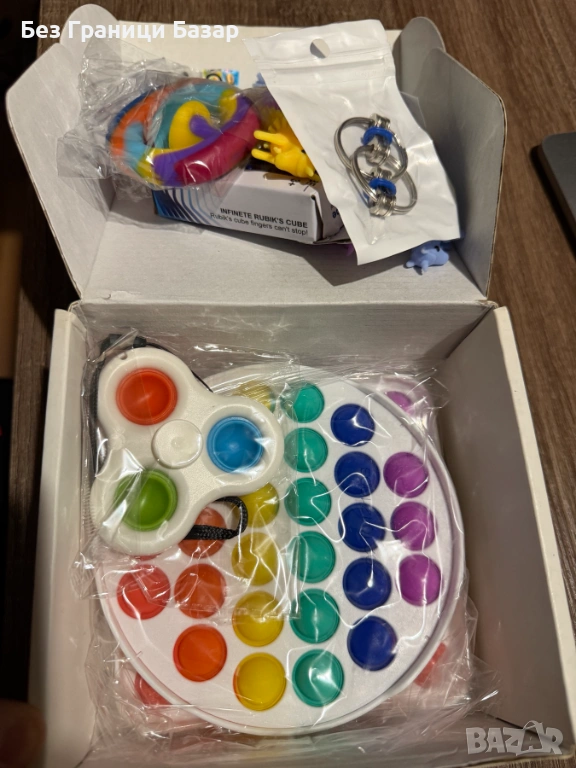 Включва Pop It дъска с цветни мехурчета + fidget spinner