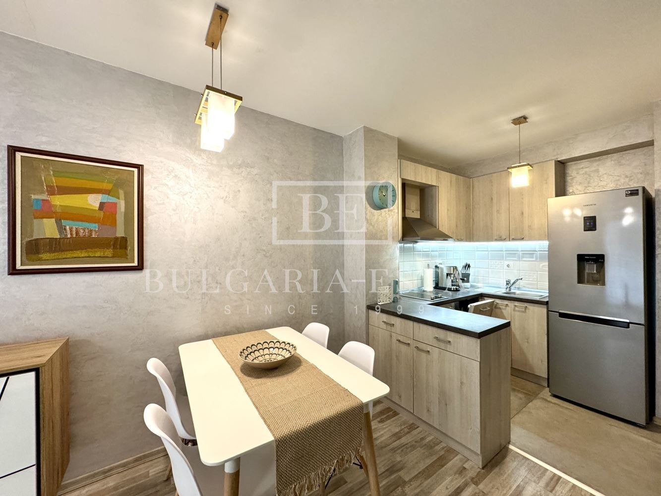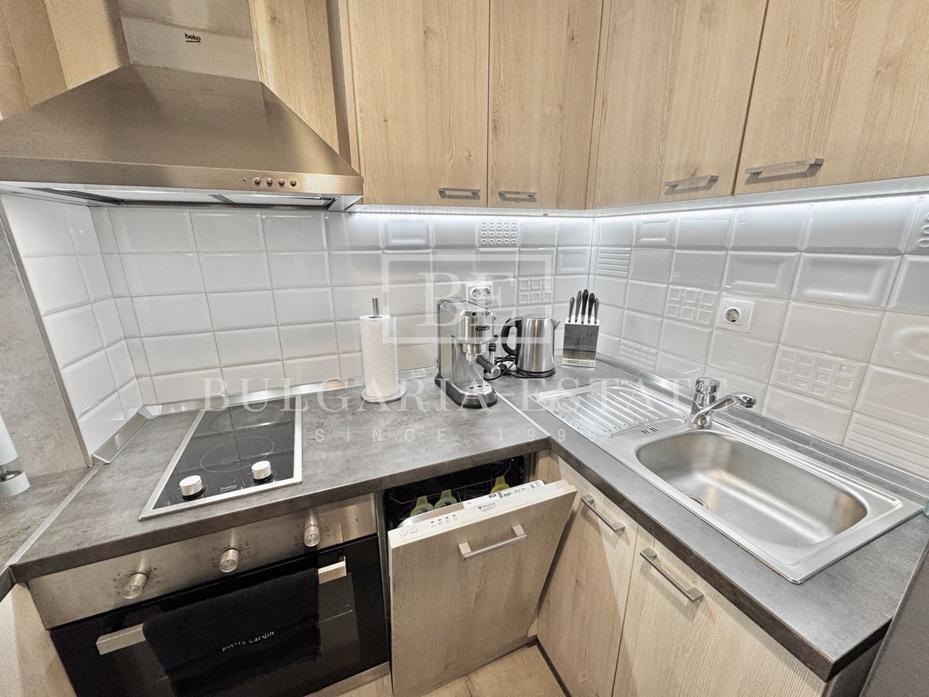 Апартаментът е оборудван с два климатика, съдомиялна машина и всички необходими електроуреди за едно удобно ежедневие.