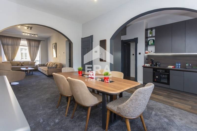 ЕРА Голд има удоволствието да Ви представи просторен и светъл апартамент с високи тавани до метростанция 'Сердика', ЦУМ, Народно събрание и катедрала 'Света неделя'. Имотът е основно ремонтиран и завършен по индивидуален интериорен проект, в тухлена сграда от 40-те години в сърцето на Стара София.