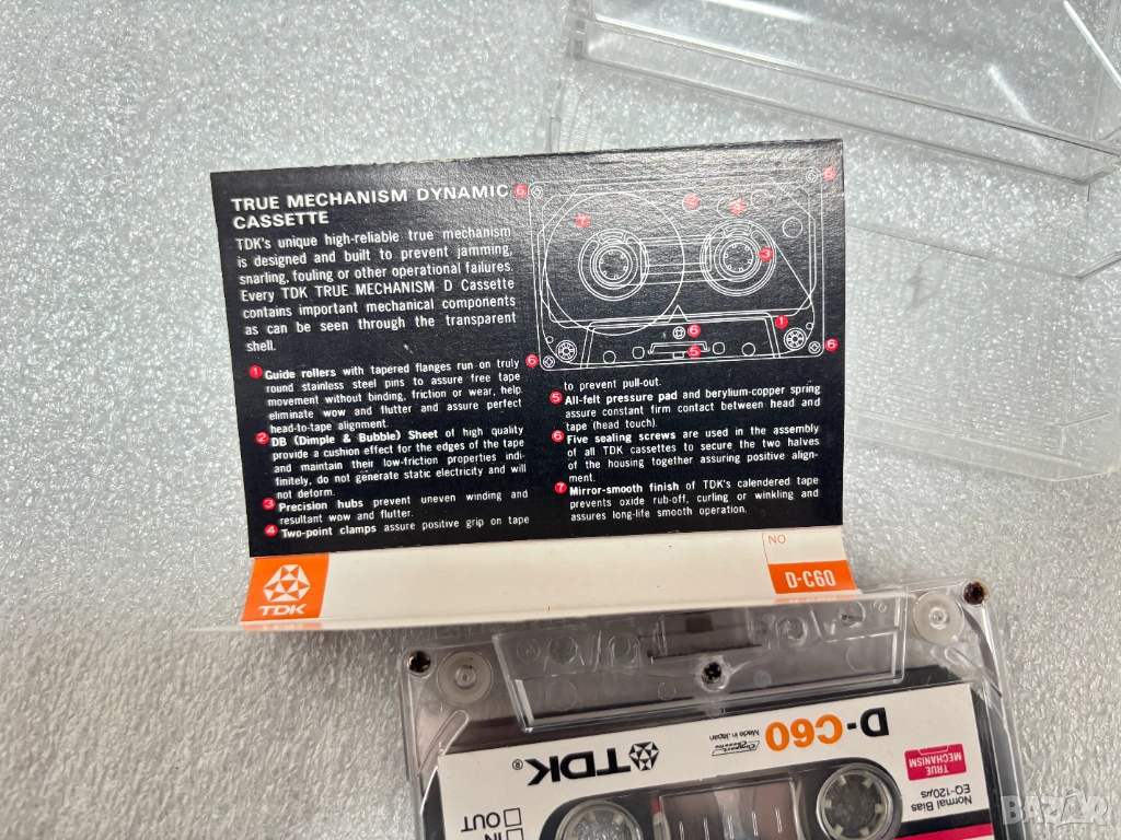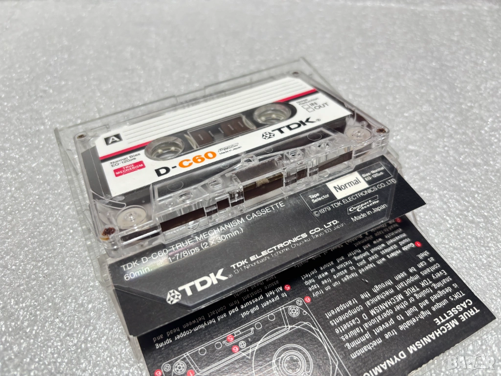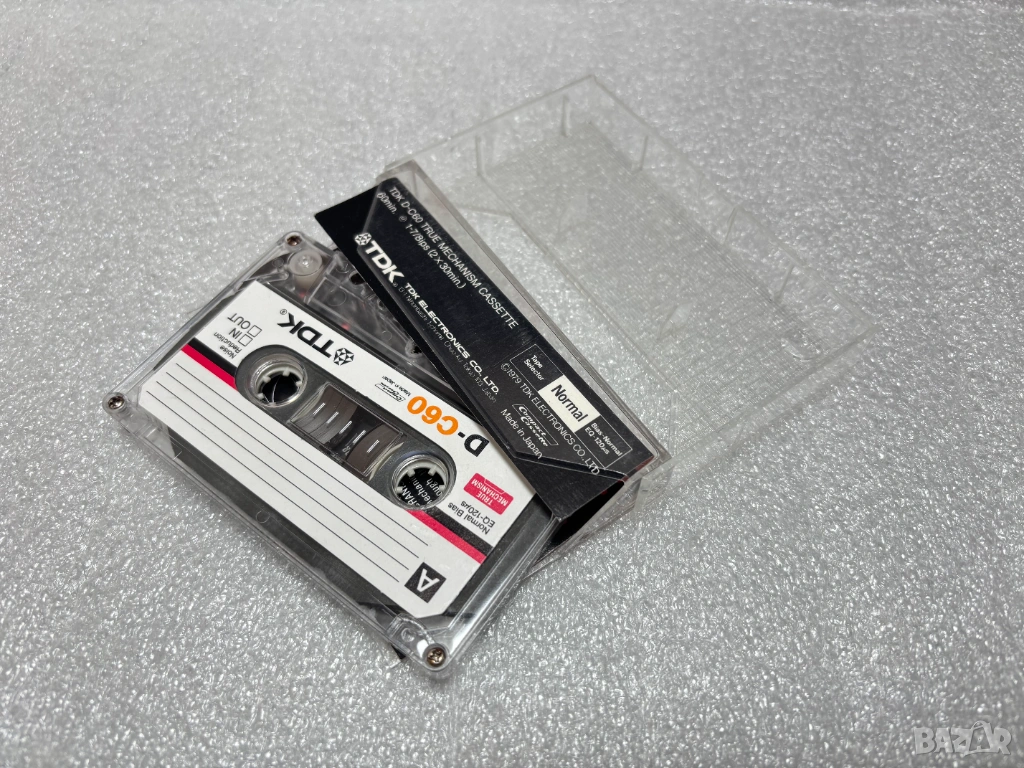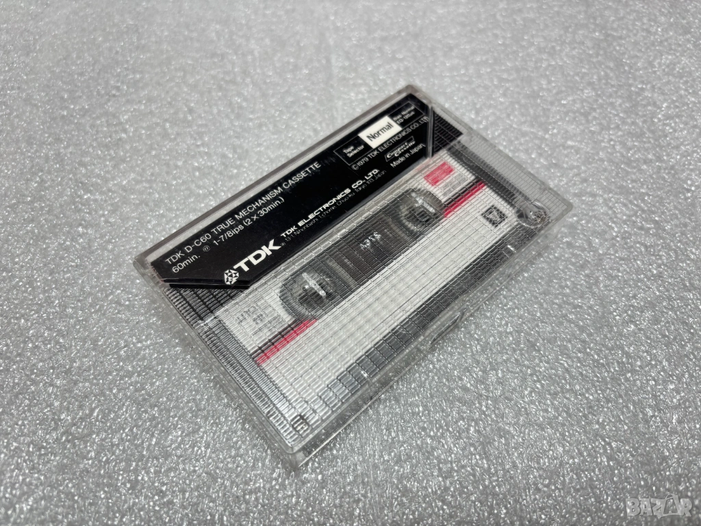TDK D-C60 от серията "True Mechanism", произведена около 1979 г.. Тази конкретна касета е класифицирана като Type I (Normal Position) с нисък шум и висок изходен сигнал, предназначена за стандартен запис.