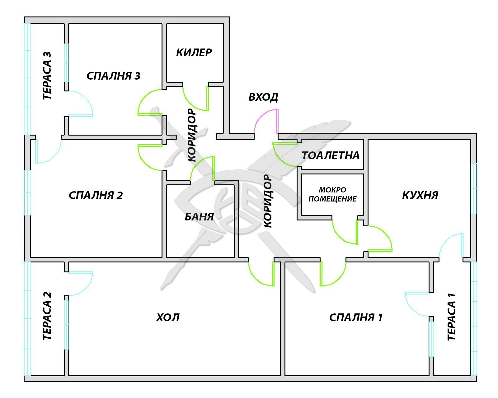 РАЗПРЕДЕЛЕНИЕ: Предлагаме апартамент с площ от 120 кв.м. функционално разпределени в три спални, кухня, хол, мокро помещение, килер, баня и тоалетна отделно, три тераси.