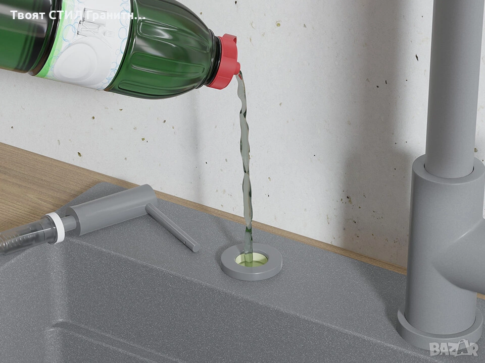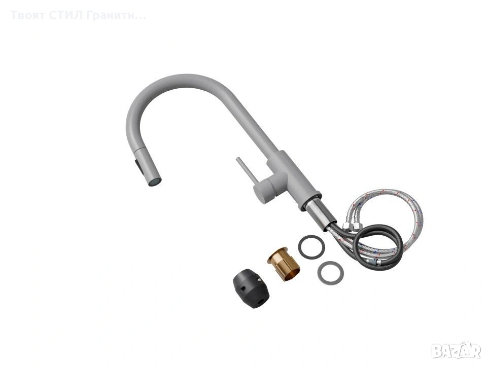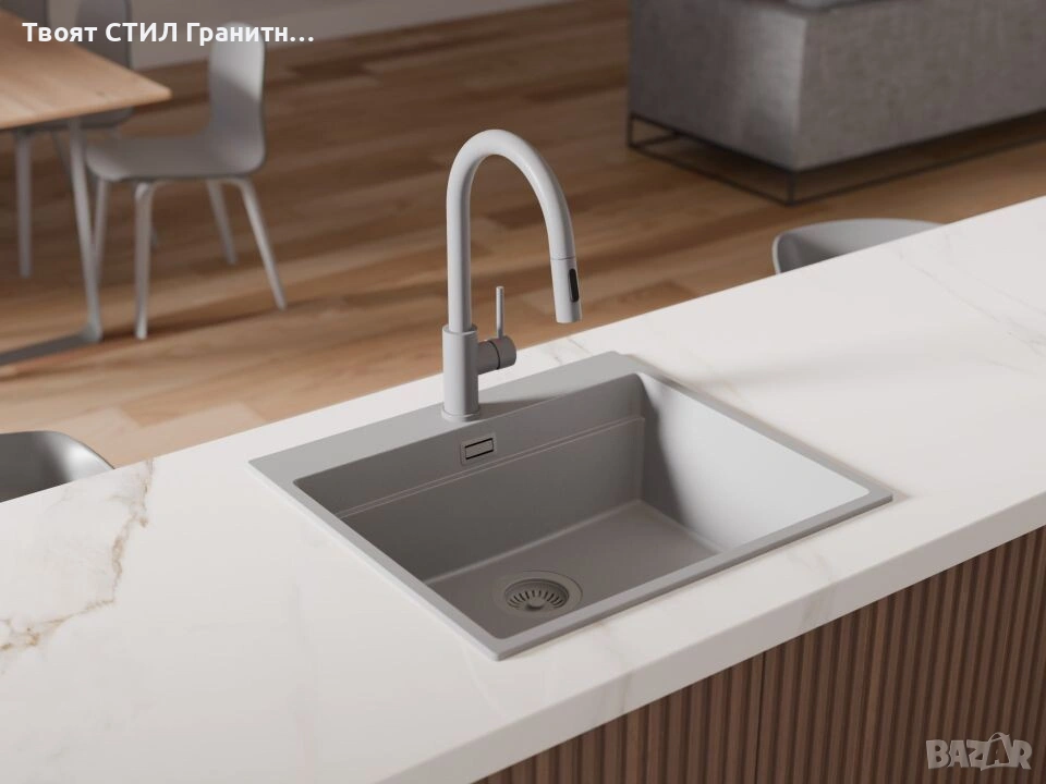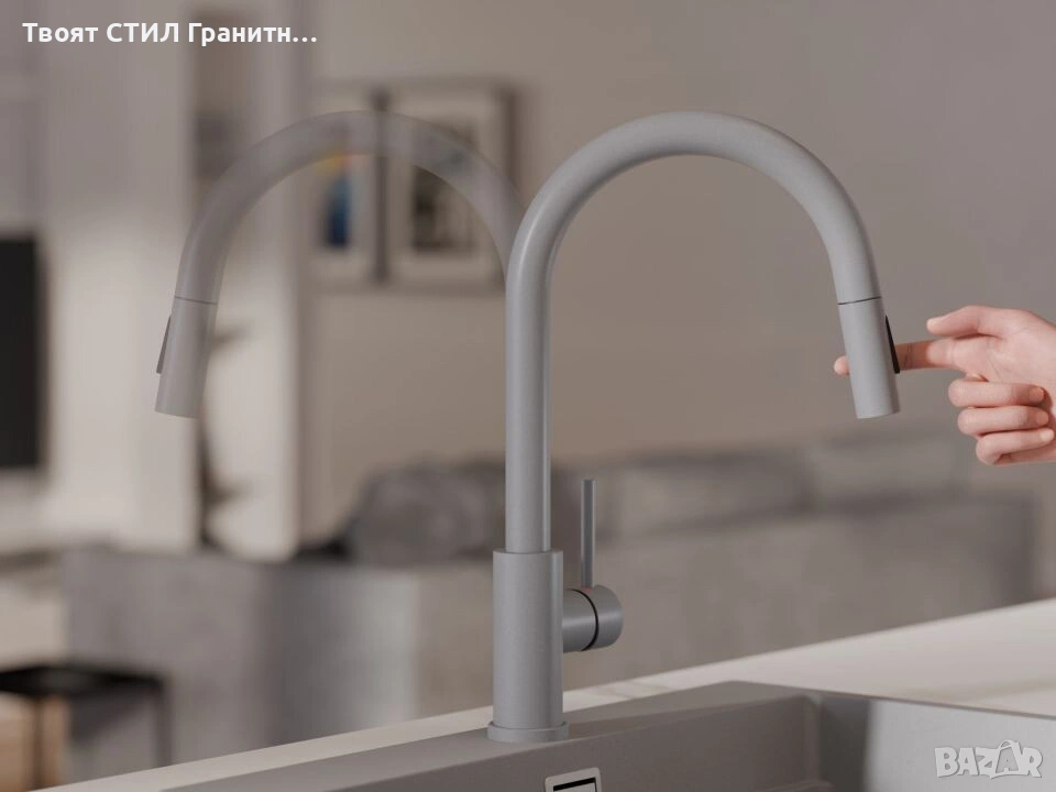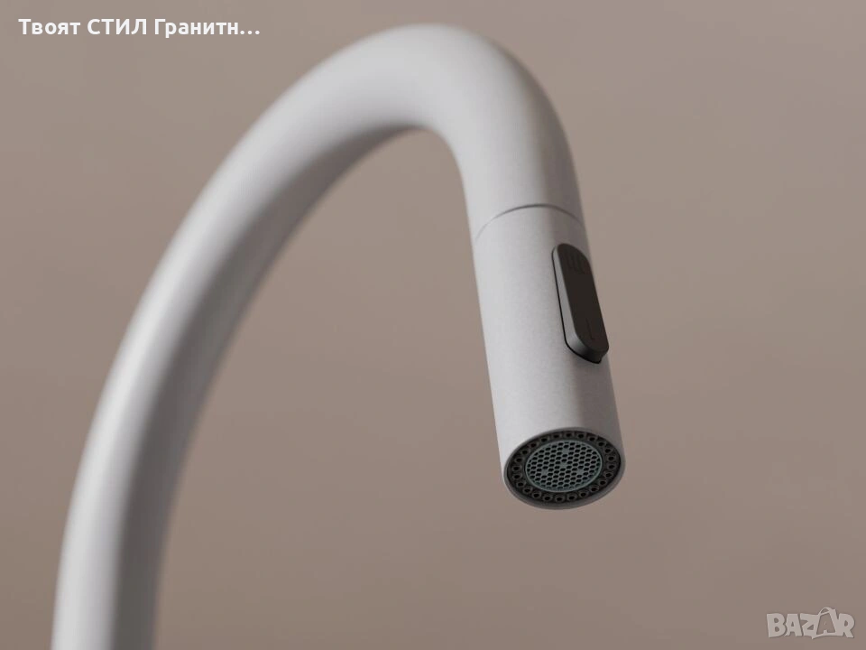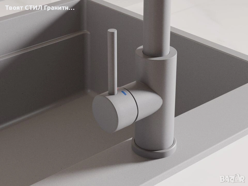 Смесителят е 100% цветово съчетан с гранитните мивки от Твоят Стил / granitnimivki.bg, което го прави перфектното решение за модерна и стилна кухня.