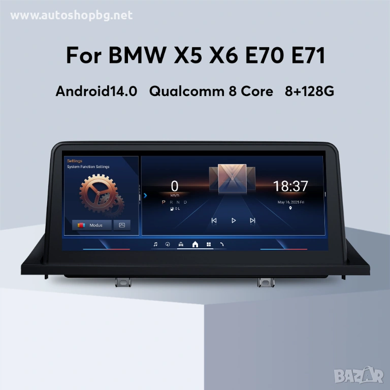 Модерна Android мултимедия с голям 10.25" QLED дисплей, предназначена за BMW X5 E70 и BMW X6 E71/E72. Системата осигурява достъп до навигация, приложения, интернет и мултимедия, като същевременно запазва оригиналните функции на автомобила.