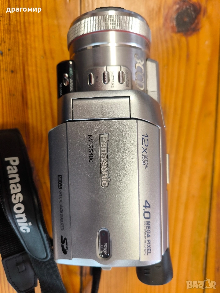 продавам видеокамера Mini DV Panasonic 3CCD LEICA DICOMAR модел NV-GS400, комплект с зарядно устройство и батерия работеща на ток, работи безупречно, много запазена, имам още много други фотоапарати, камери, обективи, чанти, светкавици, батерии, зарядни устройства, касети, филтри, ремъци, ленти, при закупуване на повече неща отстъпка