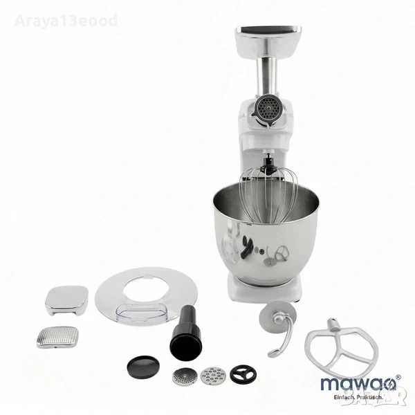 Mawaa® MixMaster 3in1 е мощен и многофункционален кухненски робот, създаден да улесни ежедневното готвене и приготвяне на разнообразни рецепти. С мощност от 1400 W, голяма 10-литрова купа от неръждаема стомана и три основни функции в едно устройство, той предлага удобство, ефективност и гъвкавост във всяка модерна кухня.