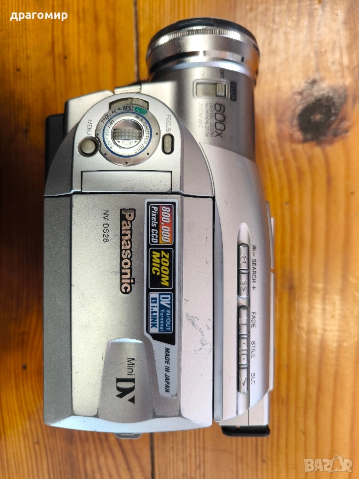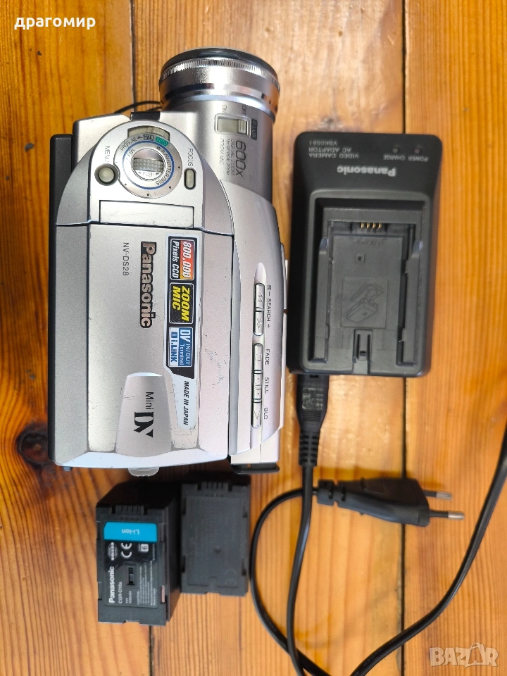 продавам работеща видеокамера Mini DV Panasonic NV-DS28EG, комплект със зарядно устройство и две батерии , имам още много други фотоапарати, камери, обективи, чанти, светкавици, батерии, зарядни устройства, касети, филтри, ремъци, ленти, при закупуване на повече неща отстъпка