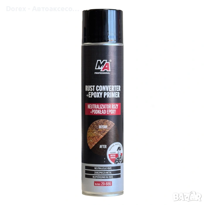 Амтра - Спрей против ръжда + епоксиден грунд 600мл е специализиран препарат, който ефективно спира процеса на корозия. Подходящ е за приложение върху всички повърхности от желязо и стомана. Продуктът образува твърдо и издръжливо покритие, което предпазва метала от неблагоприятни атмосферни условия.