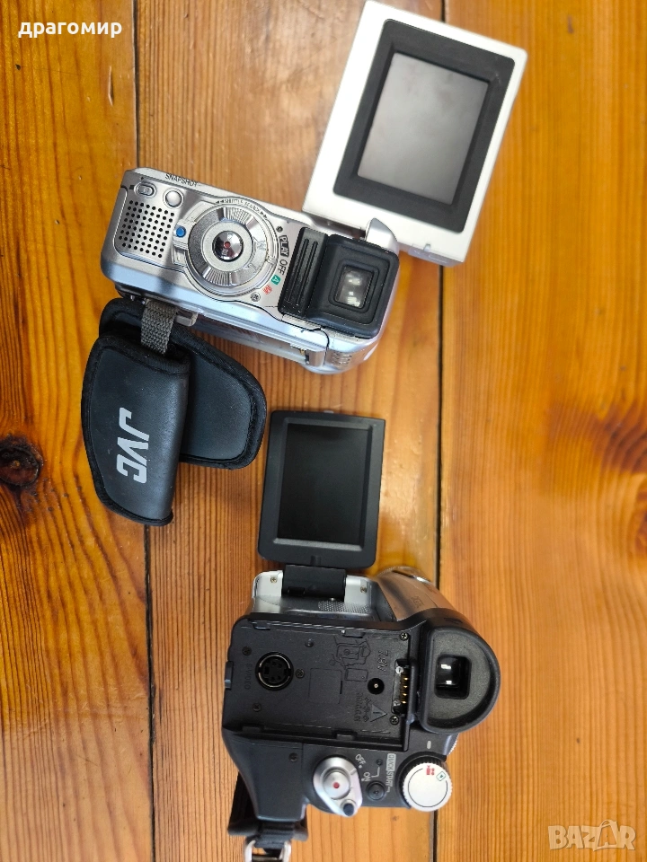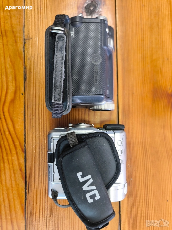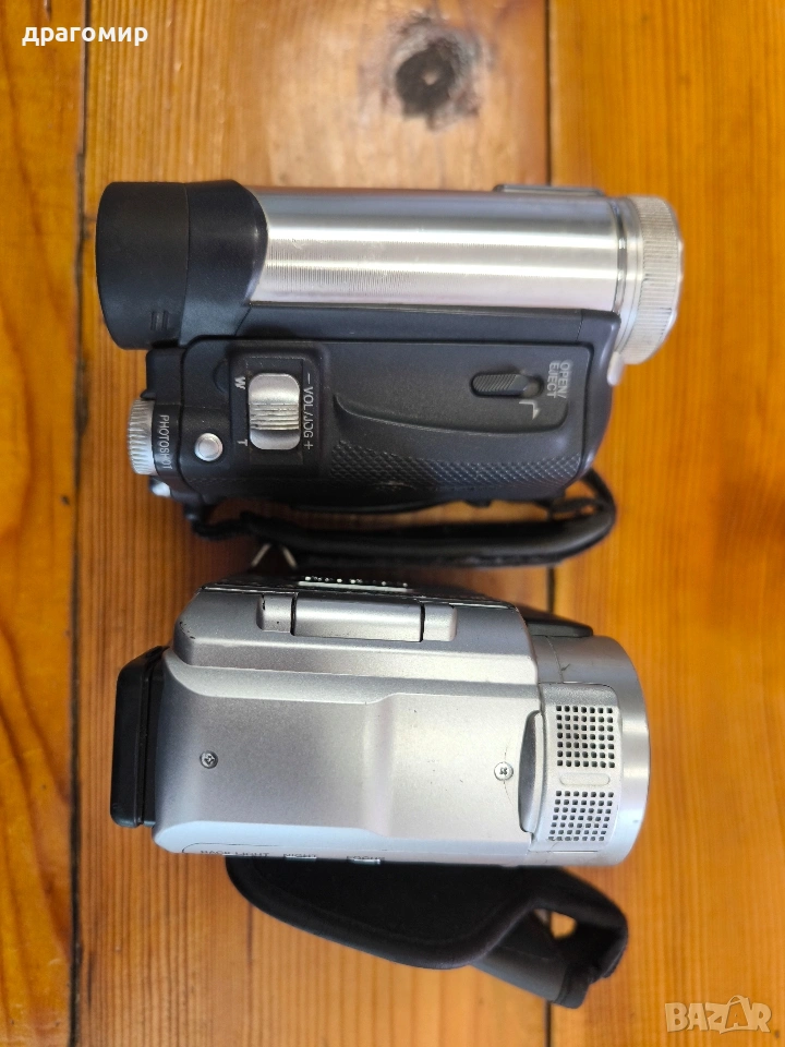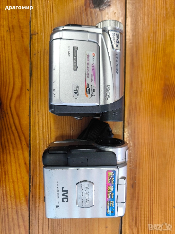 продавам две видеокамери без батерии и зарядни устройства, един брой 15 евро, общо двете 20 евро, Panasonic NV-GS11EG и JVC GR-DX25E, имам още много други фотоапарати, камери, обективи, чанти, светкавици, батерии, зарядни устройства, касети, филтри, ремъци, ленти, при закупуване на повече неща отстъпка