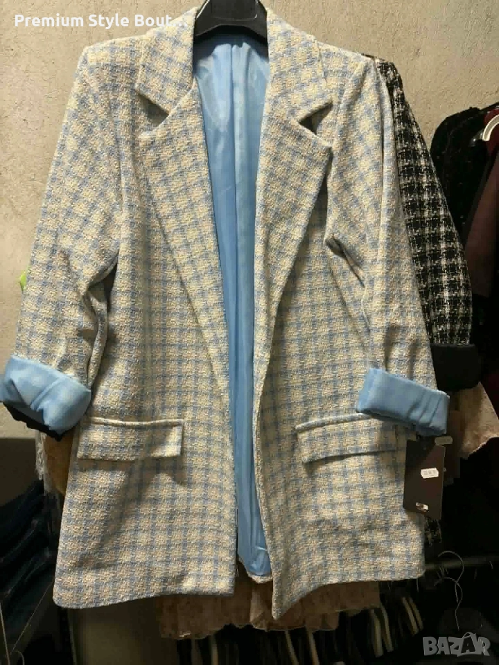 Дамско сако букле Без закопчаване Удължен модел Синьо-бял меланж Черно бял меланж 28€