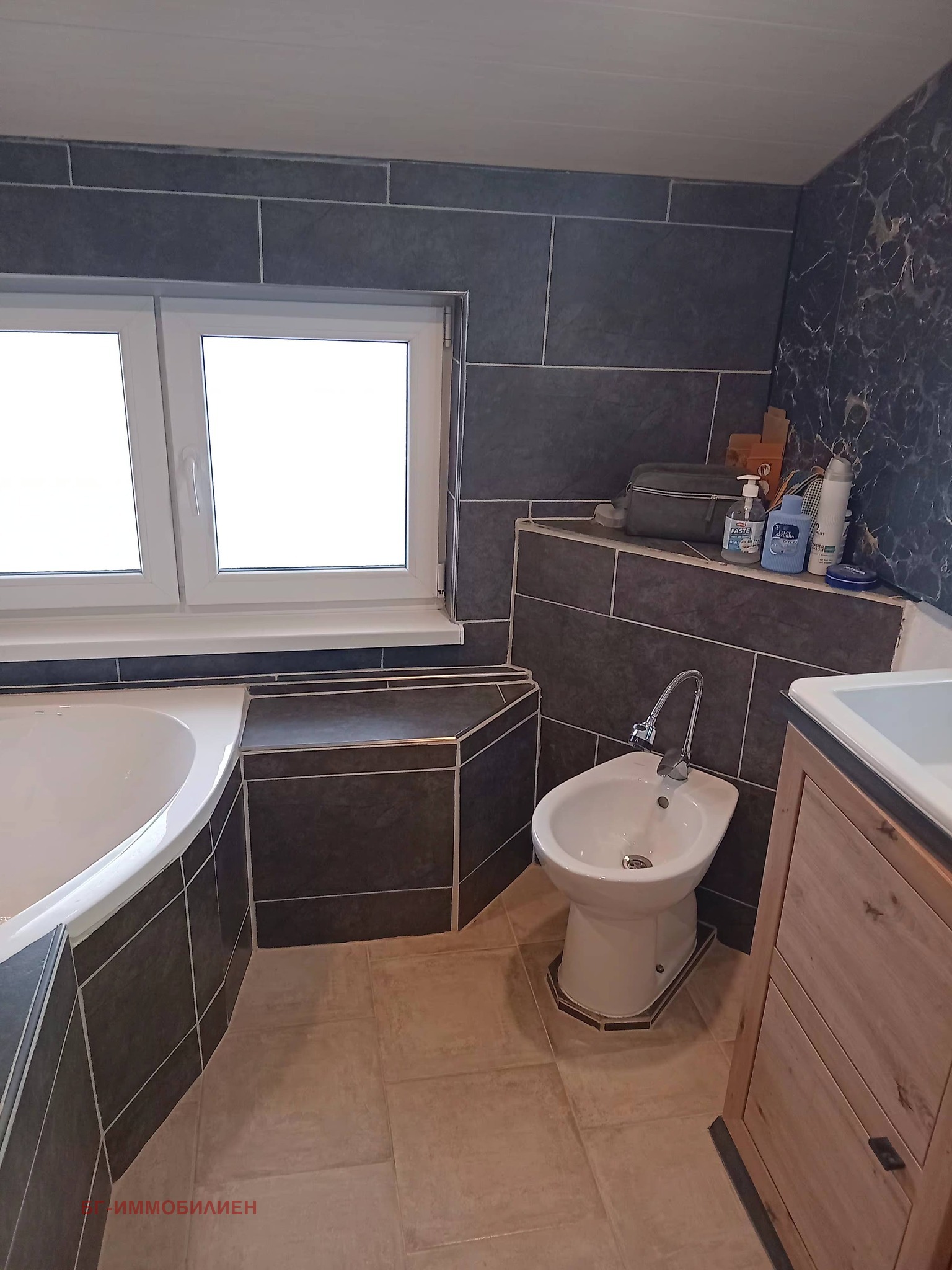 Луксозна баня с ъглова вана, душ кабина, биде, двойна мивка и стенна тоалетна
