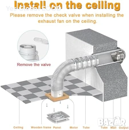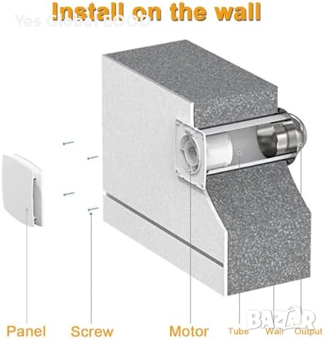 Подходящ за монтаж на стена или таван в баня, кухня, мазе или таванско помещение. Работи тихо и икономично, с дебит до 95 m³/h.