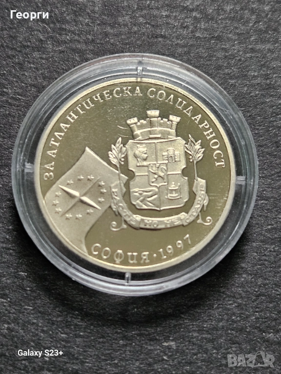 Продавам мед-никелова монета 500 лева от 1997 година,за Атлантическа солидарност,11 грама и тираж 30 000 броя.