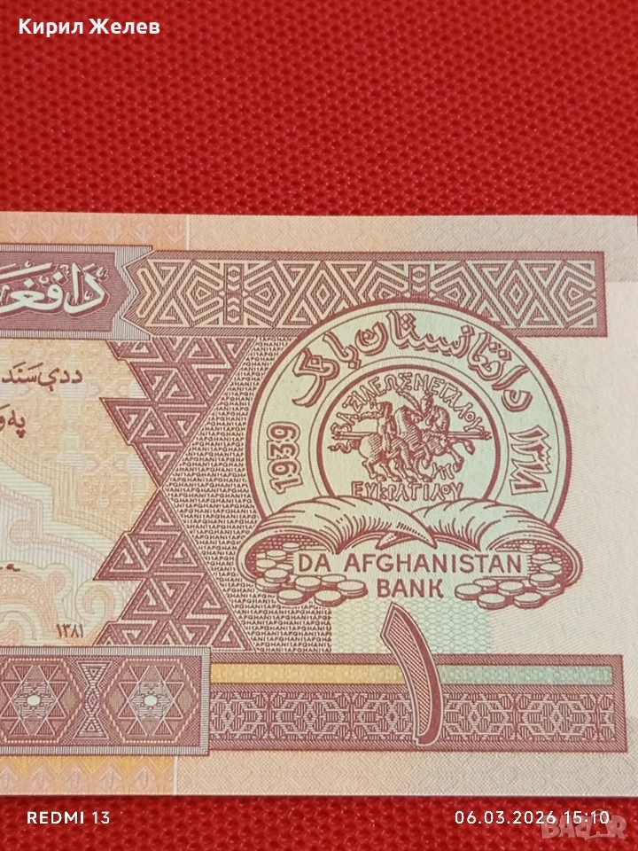 Банкнота АФГАНИСТАН много красива перфектно състояние непрегъвана за КОЛЕКЦИЯ ДЕКОРАЦИЯ 53966 → Обява 53735484