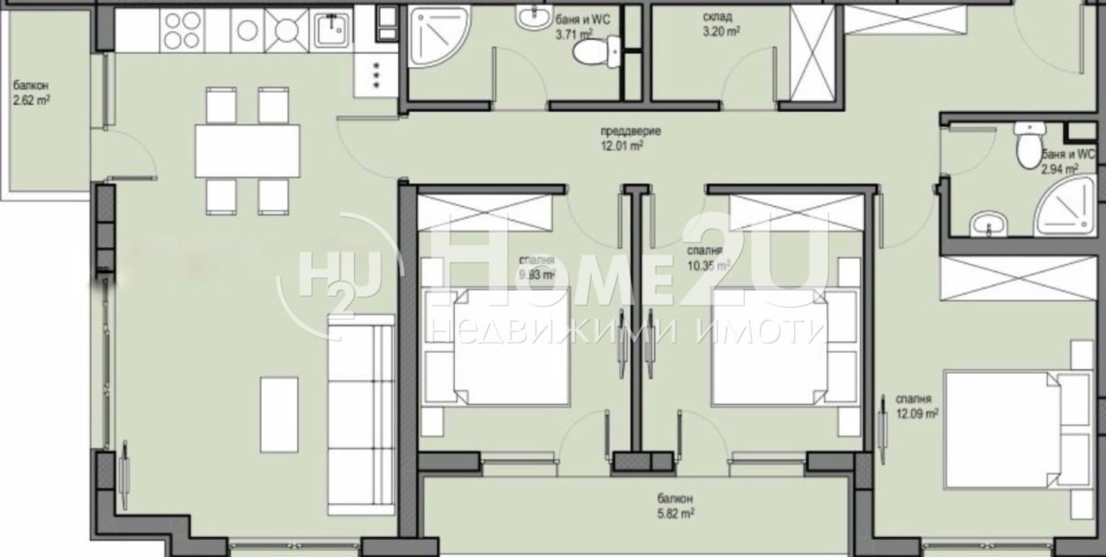 Разпределение: Входно антре Просторна дневна с кухненски бокс и излаз на балкон, три самостоятелни спални, две от които с излаз към балкон, две бани с тоалетна, склад, който може да бъде обособен като мокро Допълнително се продават подземно паркомясто и склад.
