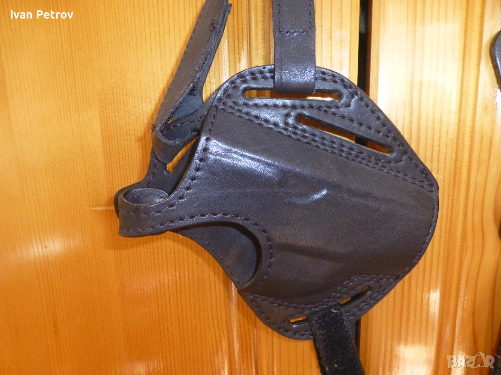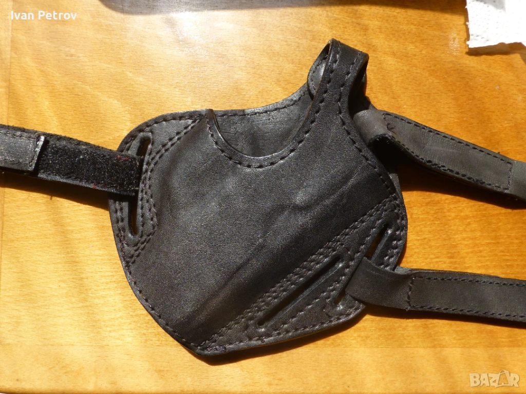 (откопчава се леко с палеца) и удобна двойна презрамка (за двете рамена) за скрито носене на КН оръжие под лявата мишница. Направени са от черна мека естествена