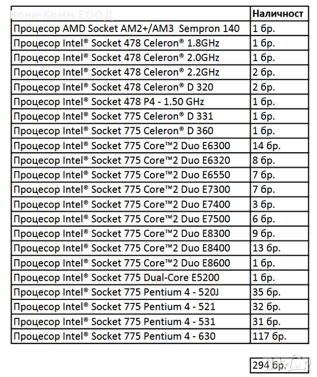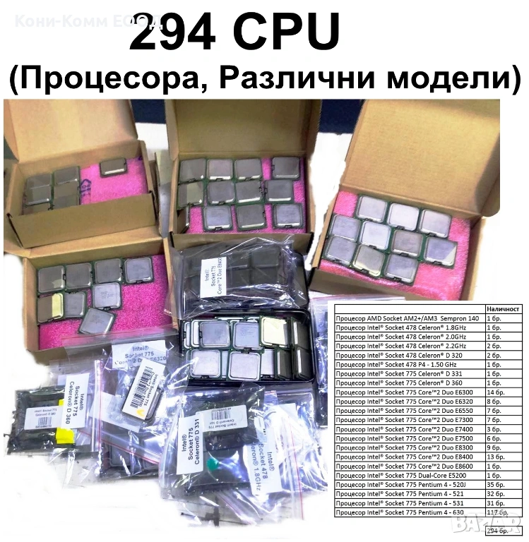 ЦЕНАТА Е ЗА ВСИЧКИ 294 бройки различни видове процесори.