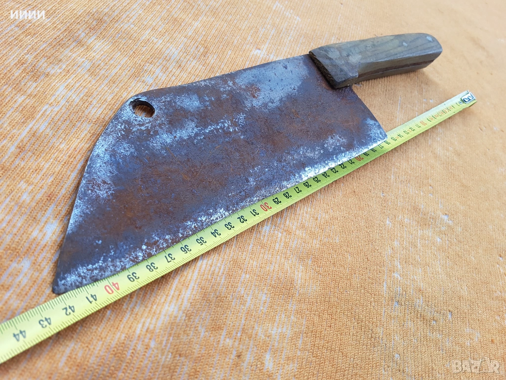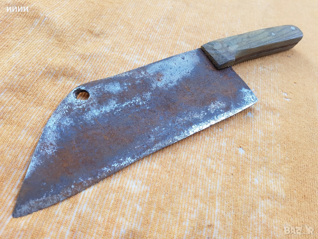 Кован и закален, тежи повече от 1 кг, без забележки, здрав и годен за ползване.