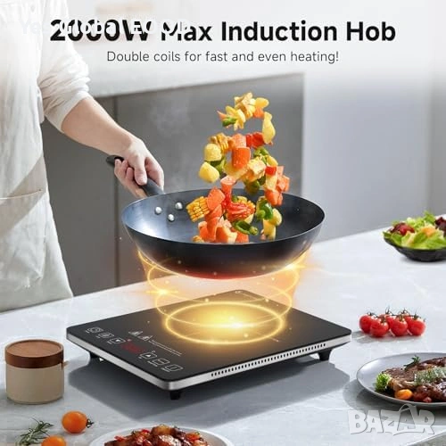 Компактен индукционен котлон AMZCHEF 2000W с ултратънък модерен дизайн. Осигурява бързо нагряване и прецизен контрол на температурата с 20 температурни нива и 20 степени на мощност.