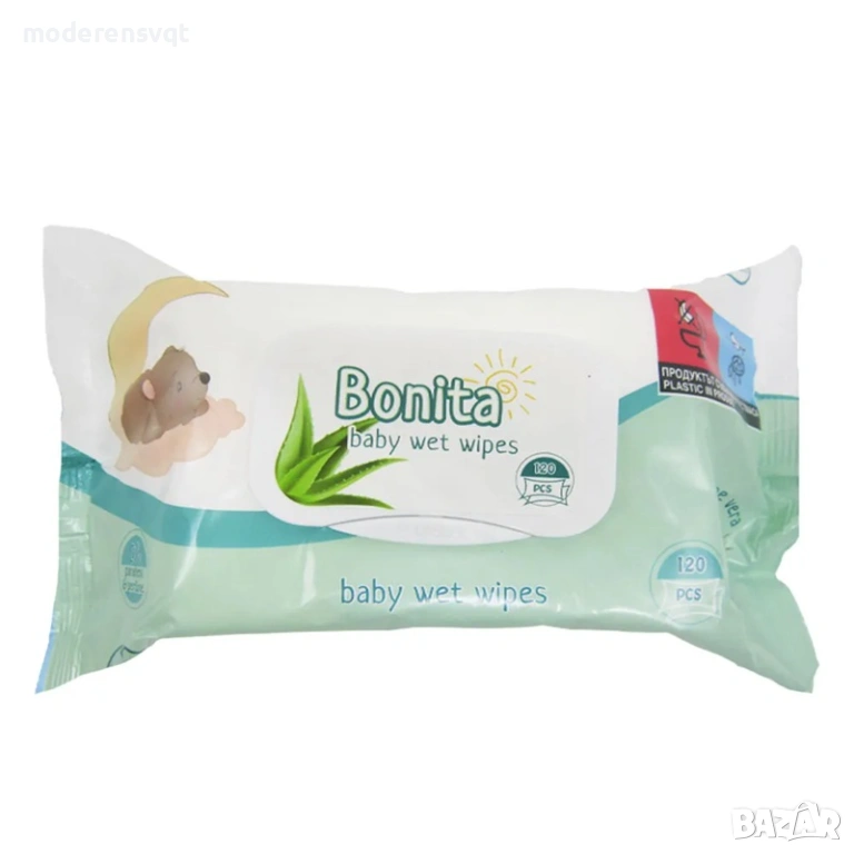 Мокрите кърпи на марката Bonita са изключително меки и плътни. Те са специално разработени за почистване, хидратиране и овлажняване на кожата. Не съдържат алкохол. Съставките, които се съдържат в тях, имат успокояващ и освежаващ ефект. Голямата опаковка включва 120 броя.