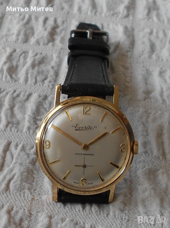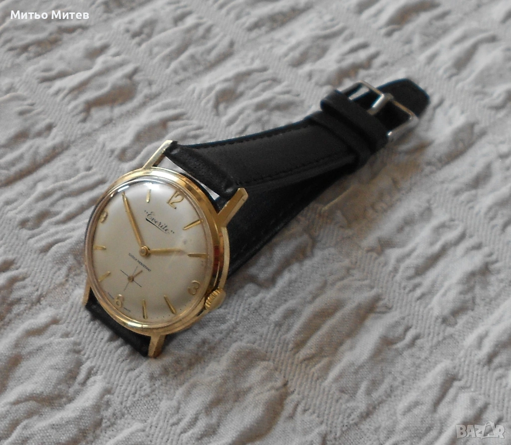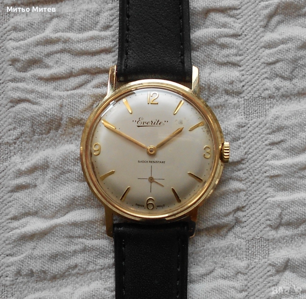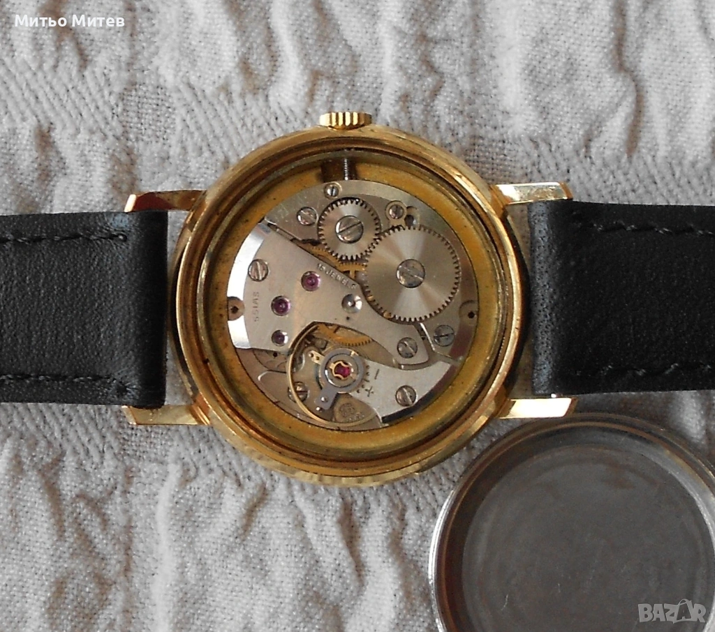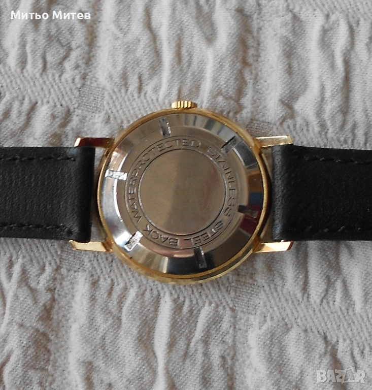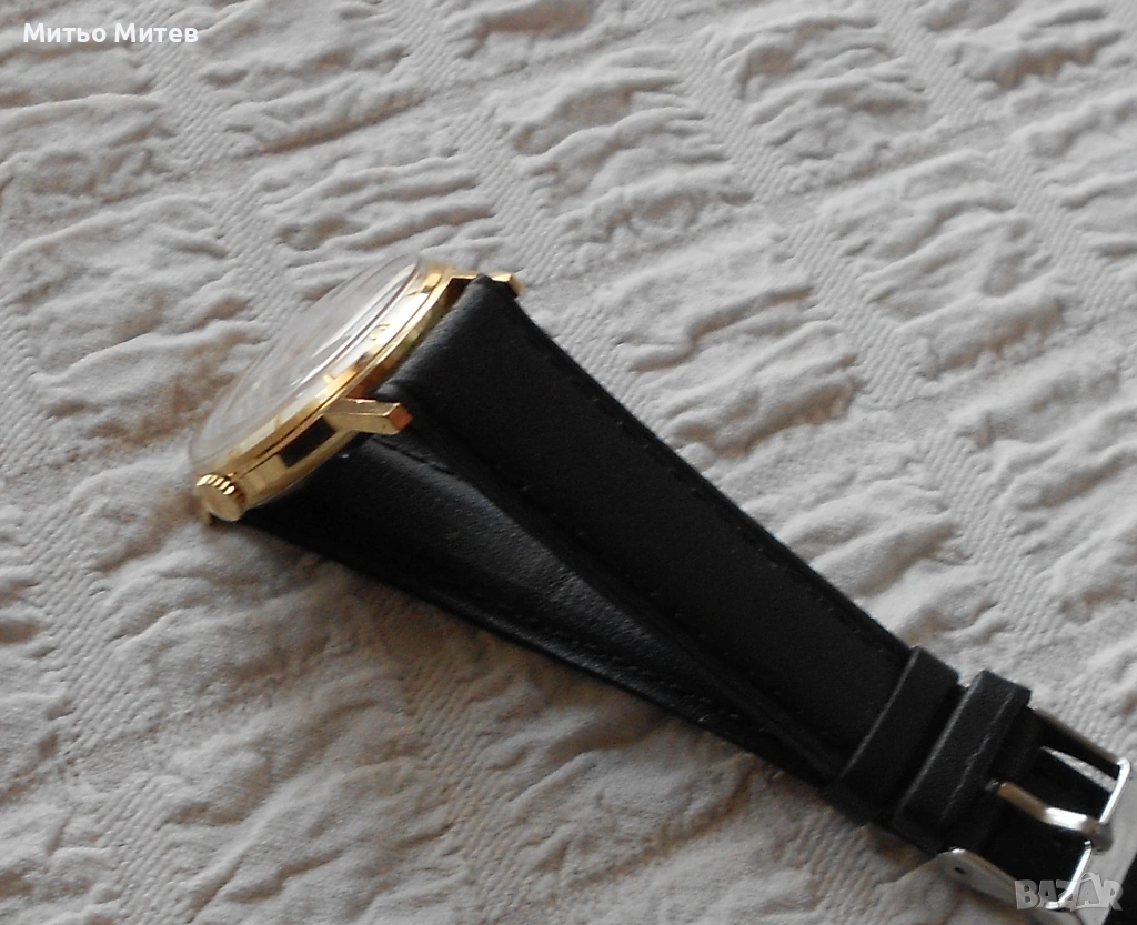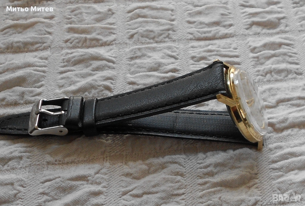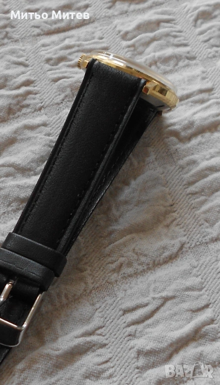 Оригинален циферблат с малко тъмно петънце между маркери "1" и "2". Златисти стрелки и маркери.
