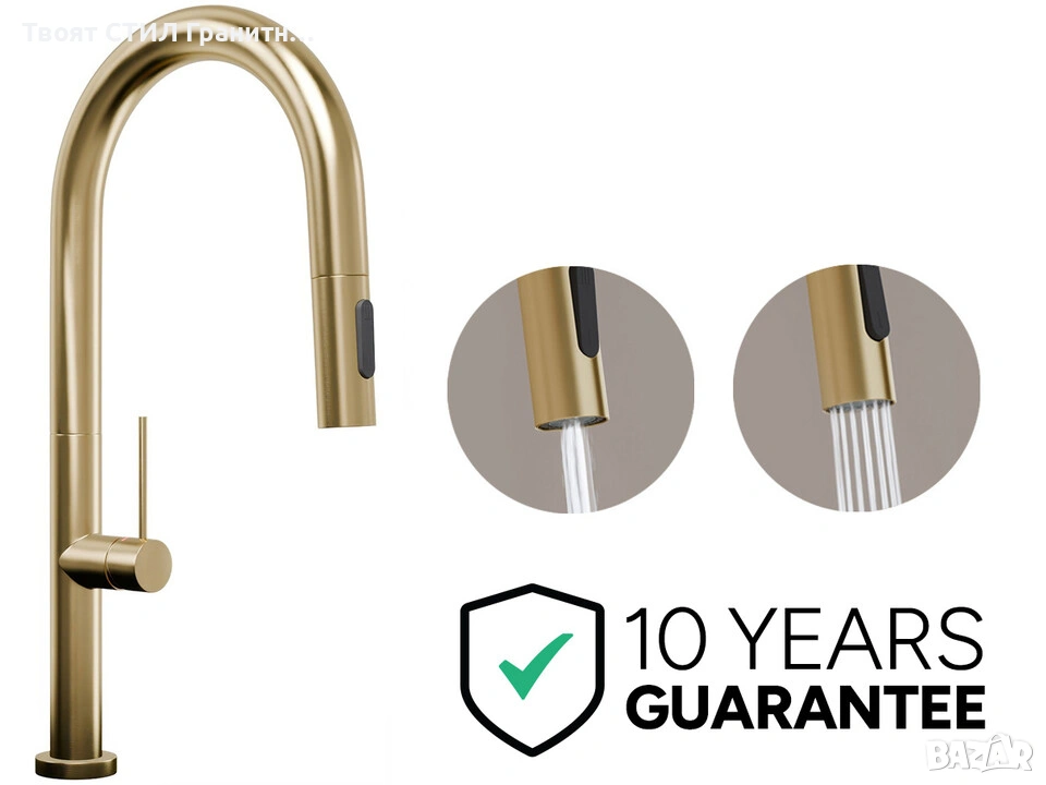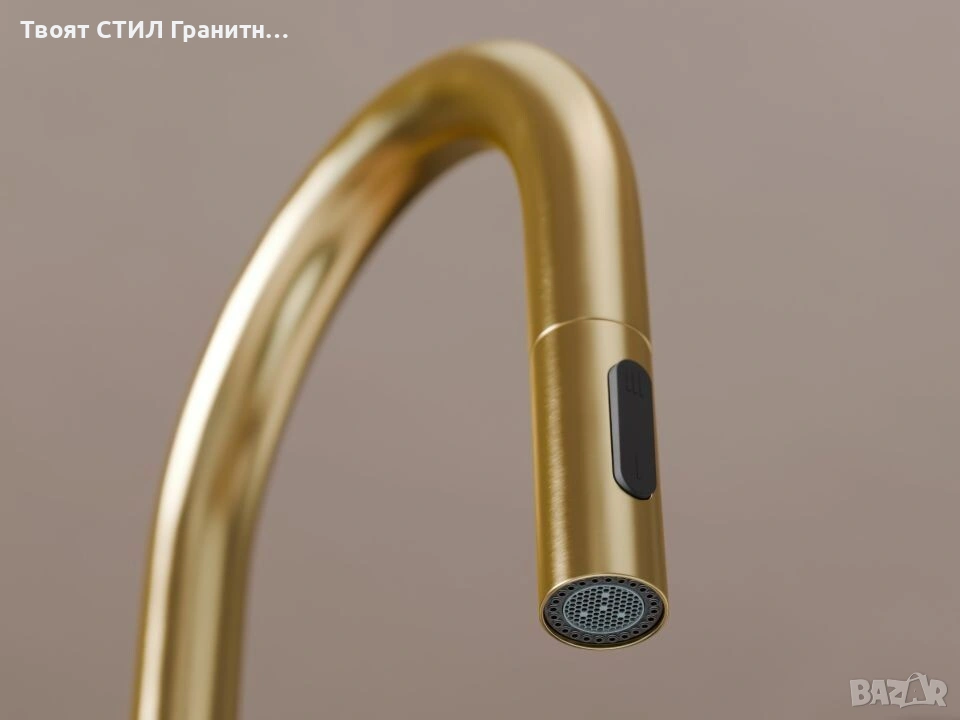 Златен смесител за кухня с изтегляща глава, 2 режима на струя - 9020