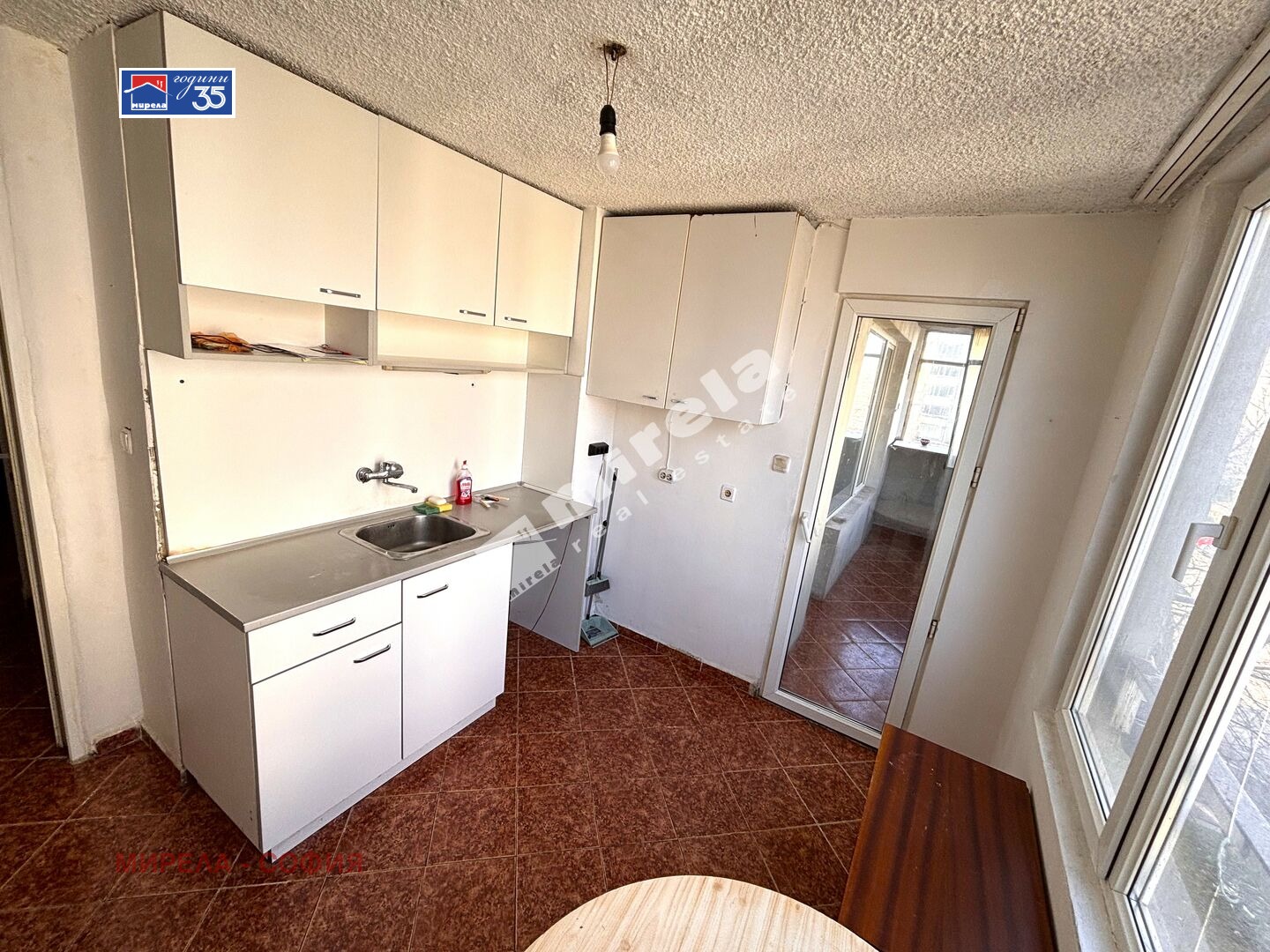 Апартаментът е необзаведен. Разпределението включва: коридор, дневна, кухня с трапезария, спалня, баня с тоалетна и голяма тераса.