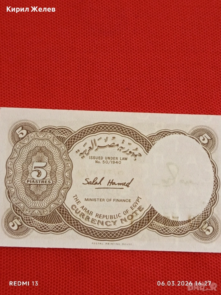 Банкнота ЕГИПЕТ много красива перфектно състояние непрегъвана за КОЛЕКЦИЯ ДЕКОРАЦИЯ 53940 → Обява 53736632