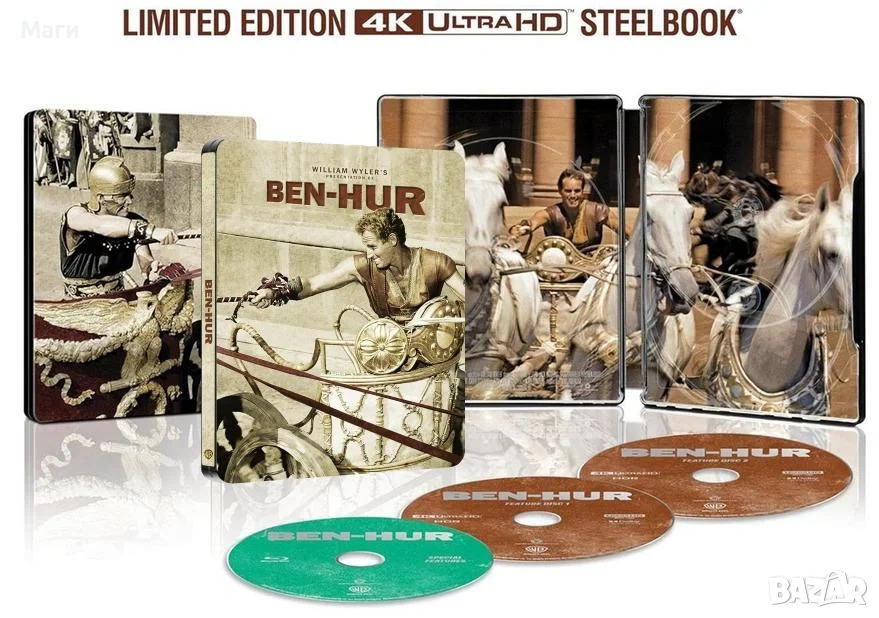 издание на филма ,, Ben Hur " - Бен Хур " на два 4K UHD диска + Blu Ray bonus material disc - без Бг субтитри. Има английски език и английски субтитри, аудио Dolby Atmos и картина Dolby vision.
