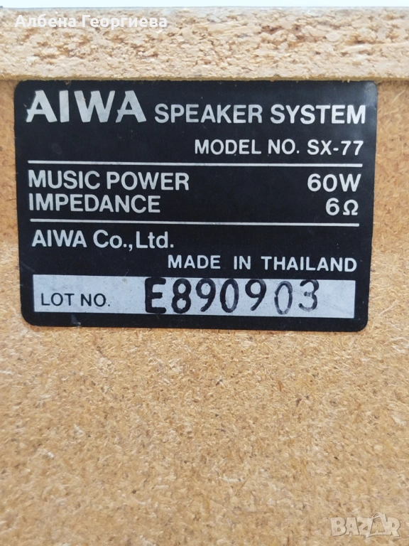 Тонколоните AIWA SX-77 са класически трилентови рефлексни озвучителни тела от началото на 90-те години (произвеждани между 1990 и 1992 г.). Те са известни със своя типичен за епохата „ретро“ звук и стабилна изработка. На едната тонколона има леко скъсване на плата показано е на снимките .