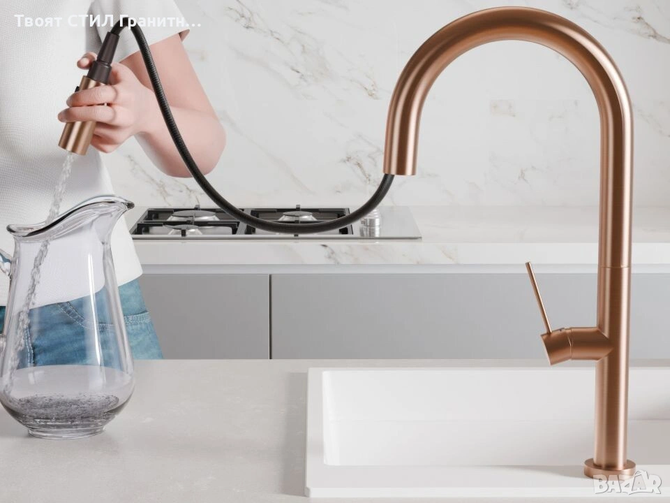 смесител за кухня, кухненски смесител, смесител 9020, смесител с изтегляща глава, кухненски кран, смесител за мивка, смесител за гранитна мивка, дизайнерски смесител за кухня, модерен кухненски смесител, смесител за модерна кухня, смесител с душ, кухненски смесител златен, титаниев смесител, меден смесител, смесител brush gold.