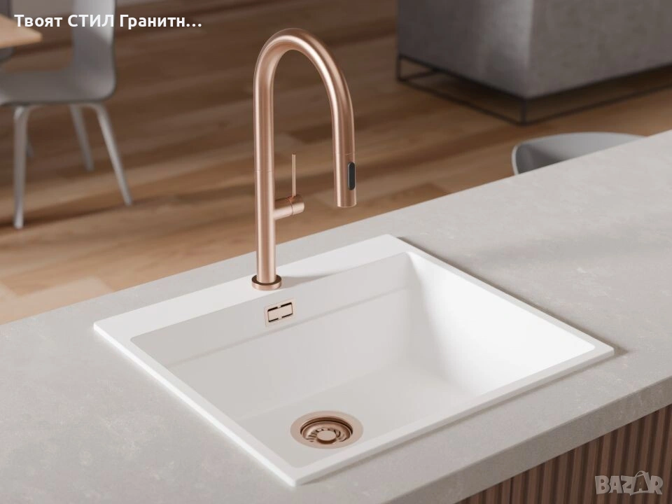 Смесителите са идеални за комбинация с гранитни мивки, дозатори и сифони в същия цвят.