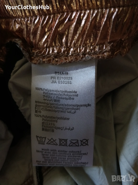 Спортна кройка. Лого бродерия отзад. Еластична талия с връзки. Лека материя с ефект на набръчкване. Цвят: лъскав розово-златист. Състав: 100% полиамид