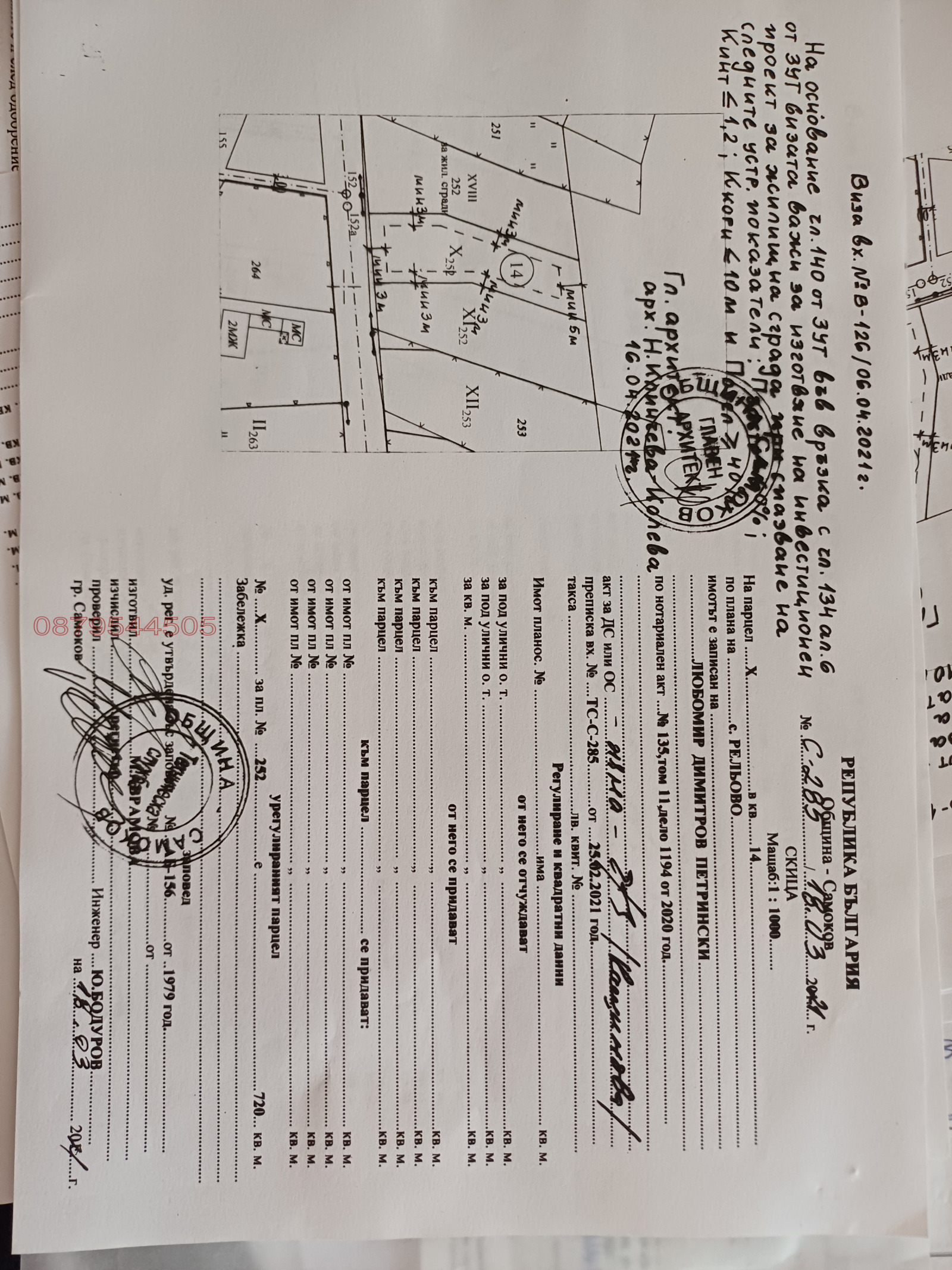 Продава се от собственик .Парцела се намира в с. Рельово на 10мин от Белчин баня и на 20 мин от Боровец , на прекрасно място разположено в края на селото , граничи с улица отпред , отляво и дясно къщи , на гърба нива и изглед към планина Плана . Има изготвен готов проект за едноетажна фамилна къща / 3 спални , 3 бани всекидневна с кухня и сервизно помещение / с РЗП 158 кв/м и разрешение /виза/ за строеж . За контакт Любомир Петрински 0879544505