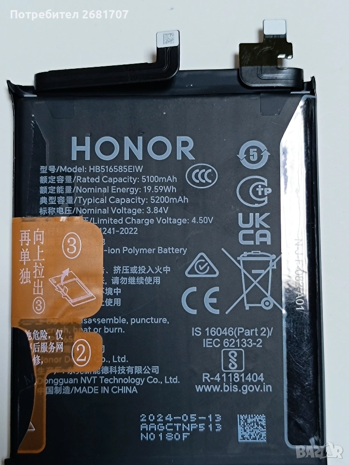 оригинална батерия за HONOR 200 pro, снимка 1 - Резервни части за телефони - 53737031 оригинална батерия за HONOR 200 pro, снимка 2 - Резервни части за телефони - 53737031 оригинална батерия за HONOR 200 pro, снимка 3 - Резервни части за телефони - 53737031 1/3