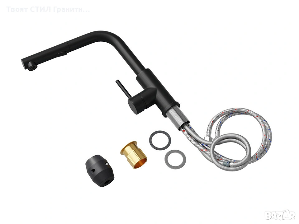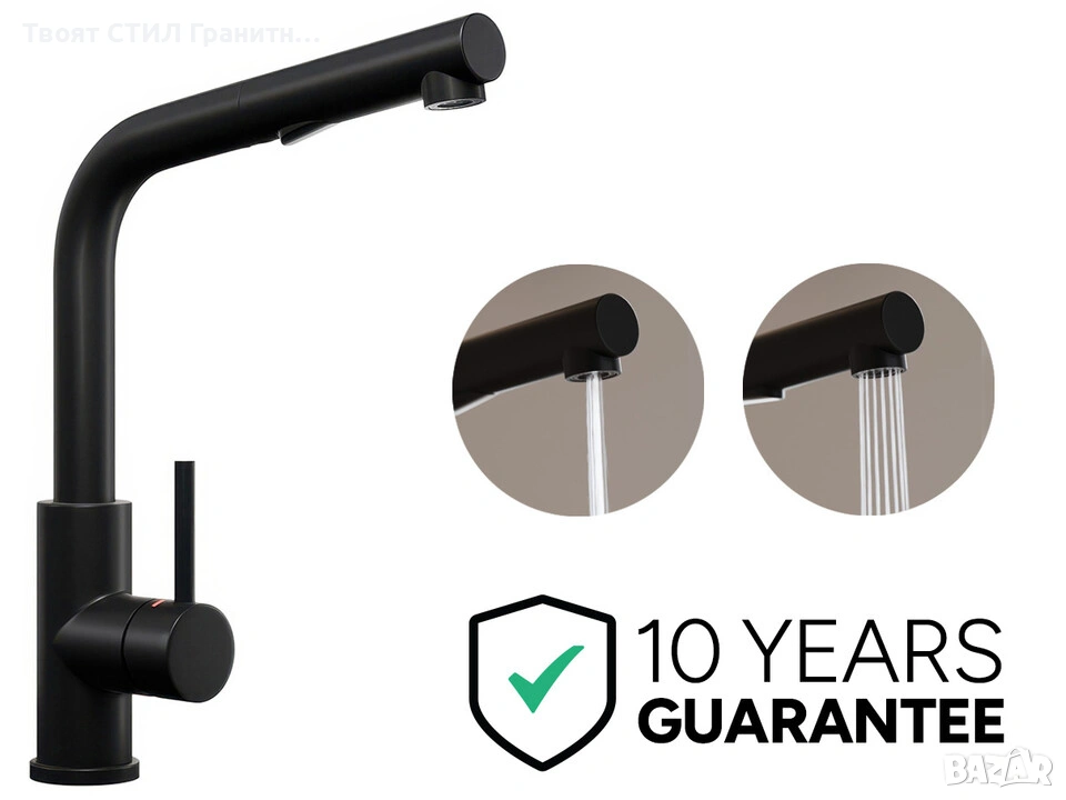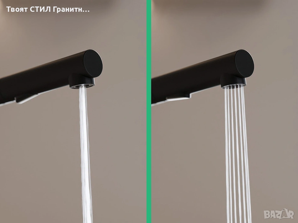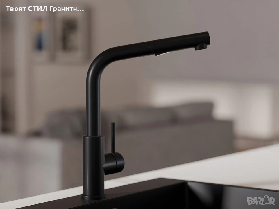 🎨 Смесителят се съчетава отлично с гранитни кухненски мивки, дозатори и сифони, което позволява да направите перфектен кухненски комплект – мивка + смесител + аксесоари.