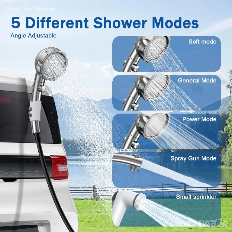 【Многофункционална употреба】Подходящ за различни среди, в допълнение към оборудването за душ, този продукт предлага и разнообразни функции, които могат да се използват за почистване на превозни средства, къщи, поливане на градини и къпане на домашни любимци. Използвайте го като преносим душ за кучета, външен душ или дори градински маркуч. Този универсален душ повишава удобството и забавлението от ежедневните ви дейности.