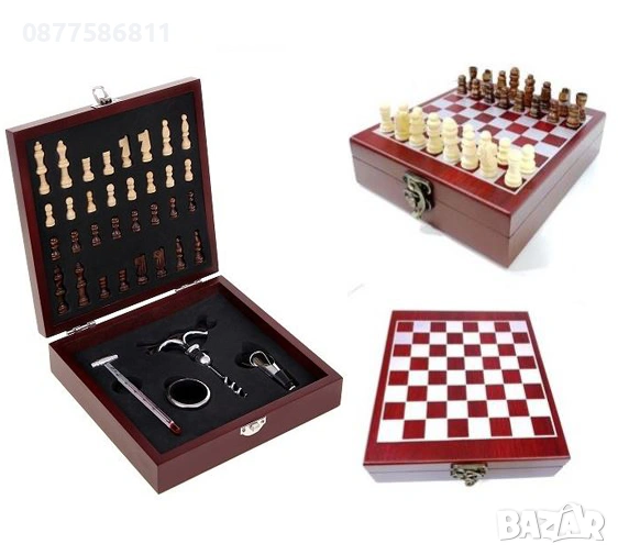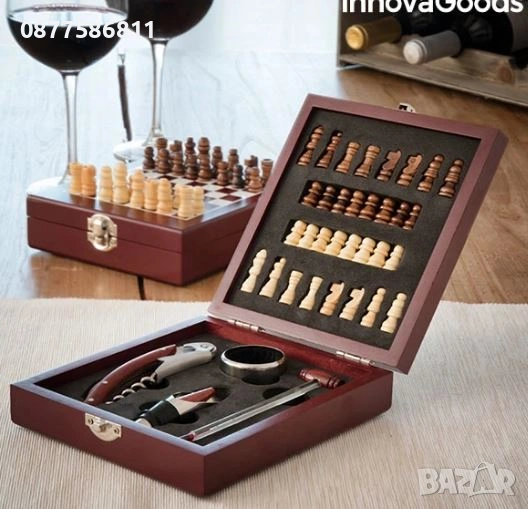 НОВА ДЪРВЕНА КУТИЯ С АКСЕСОАРИ ЗА ВИНО И ШАХ.ЛУКСОЗНИ ПОДАРЪЧНИ СЕТОВЕ ЗА ВИНО.ЛУКСОЗЕН СЕТ ЗА ВИНО+