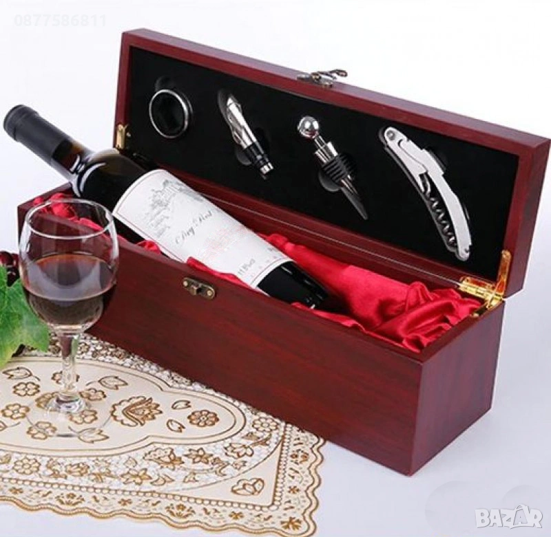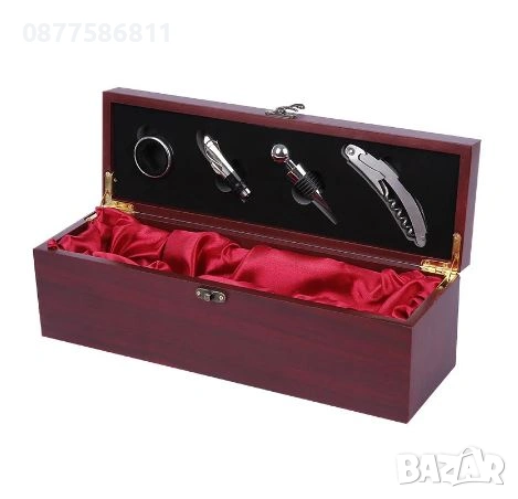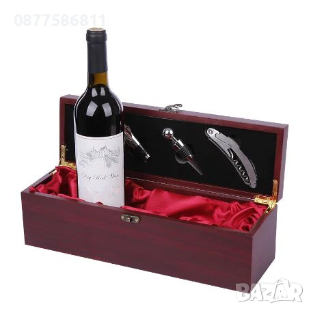 1.ЛУКСОЗНА ДЪРВЕНА КУТИЯ ЗА ВИНО С АКСЕСОАРИ (МАХАГОН/БОРДО)