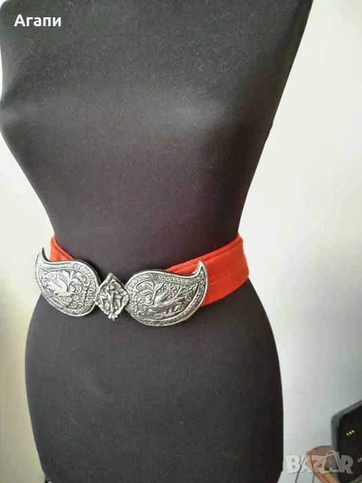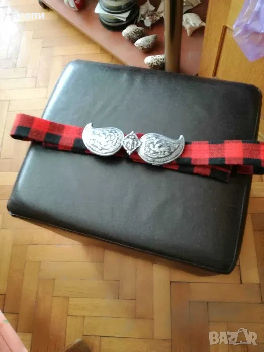 Колан с пафти от автентичен плат червен, черен и шарен червено и черно. Размери на колана: дължина-120 см., и ширина-4,5 см. Пафти: Дължина-19 см., ширина-6 см. За повече информация на лични съобщения!