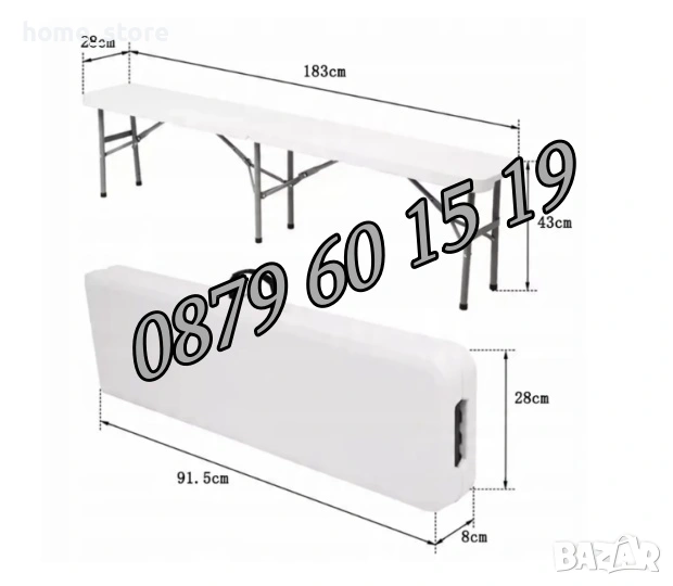 Сгъваема пейка за кетъринг 180 cм за 4 човека